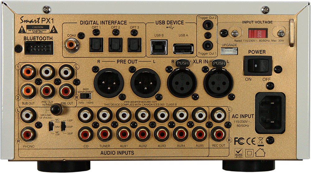 • Είσοδοι: Balanced (XLR In) CD, Tuner, 5xAux, Phono MM/MC με ρύθμιση High/Low, USB B X-MOS, USB A, 1xΟμοαξονική ψηφιακή, 3xΟπτικές ψηφιακές, Bluetooth module (για X-FTB01), Trigger In