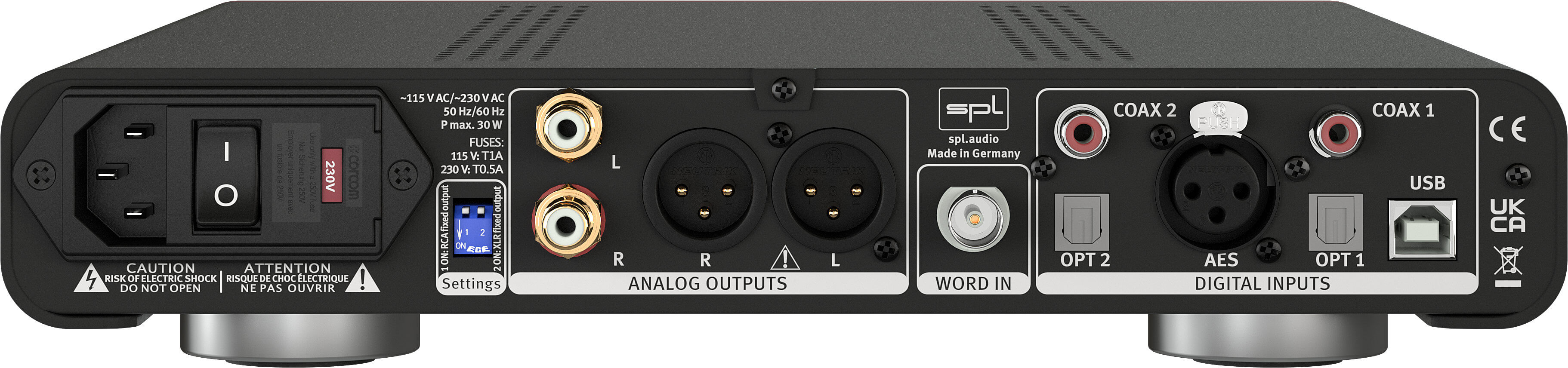 It converts PCM audio with a resolution of 32 bits and a sampling rate of up to 768 kHz, which is equivalent to 16 times CD resolution. Direct Stream Digital is also supported up to a resolution of DSD4 or DSD256. In contrast to the DAC 768xs, the DAC768 not only offers an AES/EBU digital input, but also the SPL DLP120 with VOLTAiR technology.