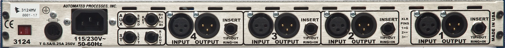 The 3124V also features up to 65dB of gain. Additionally, the Hi-Z front panel inputs feed directly to the op amps, which allow a low level input such as a guitar or bass to be amplified without a matching transformer or direct box. These Hi-Z inputs can take levels as high as +20dBu, making them perfect for keyboards and other high level devices. The mic preamp outputs are on rear panel male XLR connectors.
