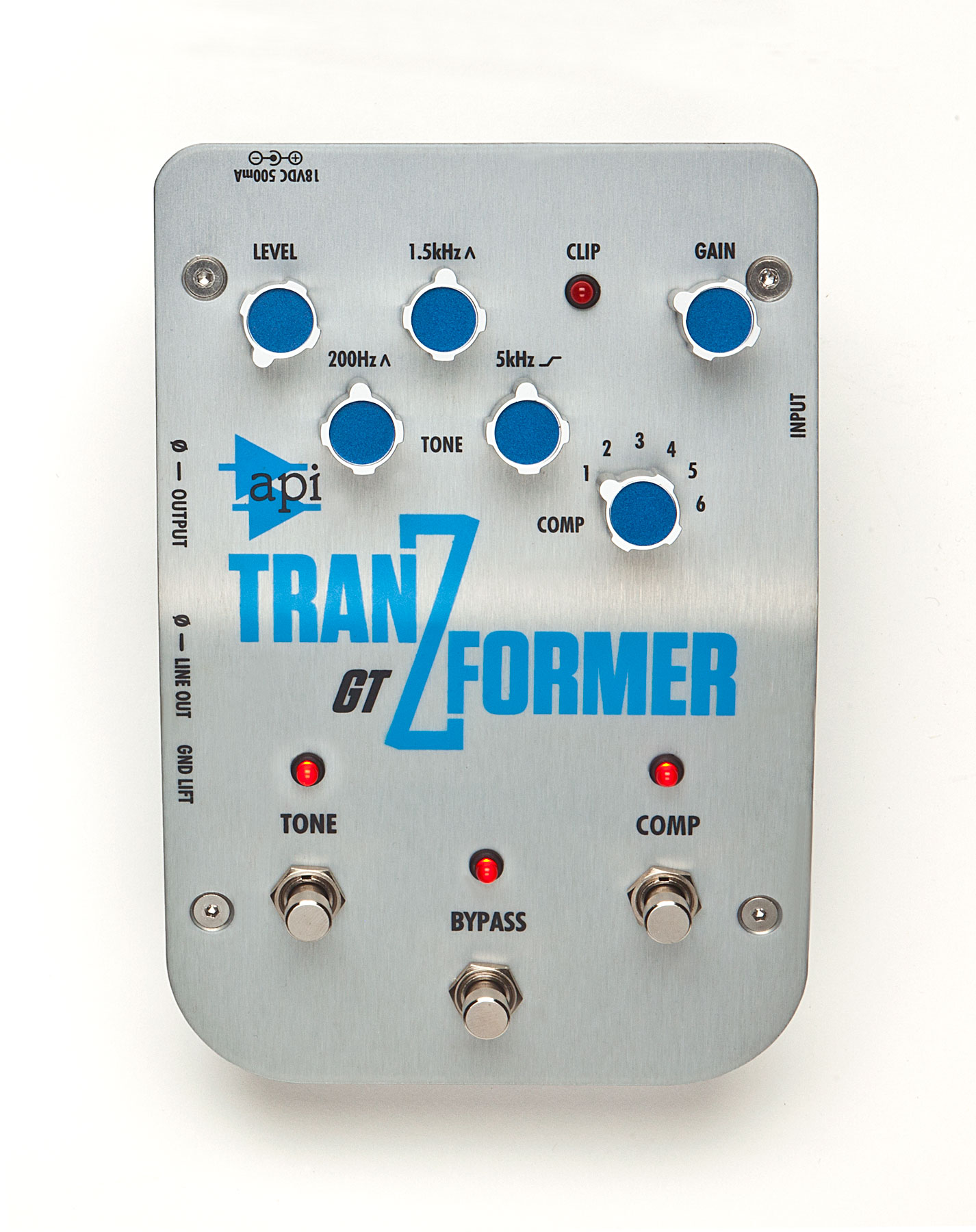The TranZformer GT is a multifunction pedal that is designed to easily and affordably bring the world-famous analog sound of API to your guitar. Offering the user an unsurpassed level of sonic control, the TranZformer GT combines an API 525 feedback-type compressor with a guitar-optimized 3 band equalizer, both independently in/out switchable.