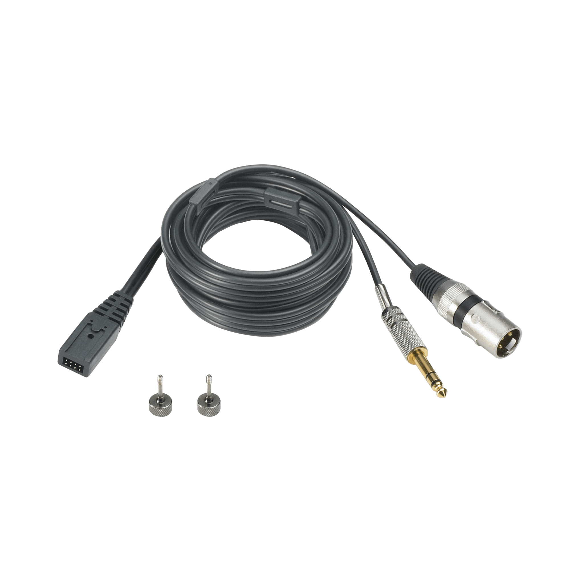 - Cable 3.3 m (10.8') long with 8-pin connector at headset end; 3-pin XLRM-type connector (microphone) and 6.3 mm (1/4") phone plug (headphone) outputs
