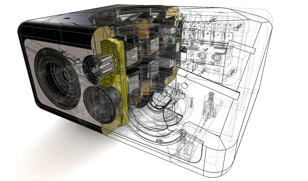 MEME™ Technology: Despite the advantages of high resolution monitors, Thomas Barefoot realizes that many engineers still use their NS10M’s † and mix cubes as secondary references. These speakers have long traditions and people find them familiar and useful for focusing in on certain aspects of their mix. However, crowding one’s console with those extra boxes degrades the sound field of the primary reference monitors. Not to mention, they are no longer manufactured, they need amplifiers, cable runs, and they consume more studio space.