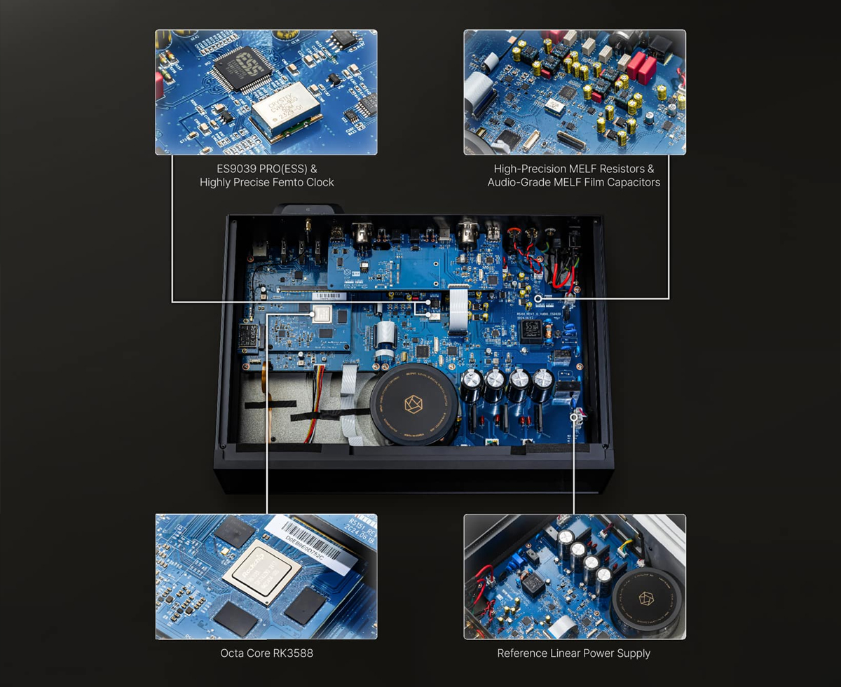 Ο σχεδιασμός του DAC του RS151 βασίζεται στο ES9039PRO DAC chip με τεχνολογία Hyperstream τέταρτης γενιάς. Εδώ, οι διαδρομές του ψηφιακού και του αναλογικού σήματος είναι πλήρως διαχωρισμένες, διασφαλίζοντας ότι κάθε κύκλωμα λειτουργεί ανεξάρτητα και με μειωμένες παρεμβολές. Ο νέος streamer επωφελείται επίσης από τον ROSE Audio Engine. Αυτή η εσωτερική ανάπτυξη της εταιρείας διασφαλίζει ότι όλος ο ψηφιακός ήχος μεταφέρεται στο DAC χωρίς απώλειες, επιτρέποντας ακριβή επεξεργασία του σήματος. Ο αναβαθμισμένος 8-Core επεξεργαστής του RS151 προσφέρει τετραπλάσια επεξεργαστική ισχύ δεδομένων και οκταπλάσια απόδοση γραφικών σε σύγκριση με οποιαδήποτε άλλη συσκευή της τρέχουσας σειράς της Rose.