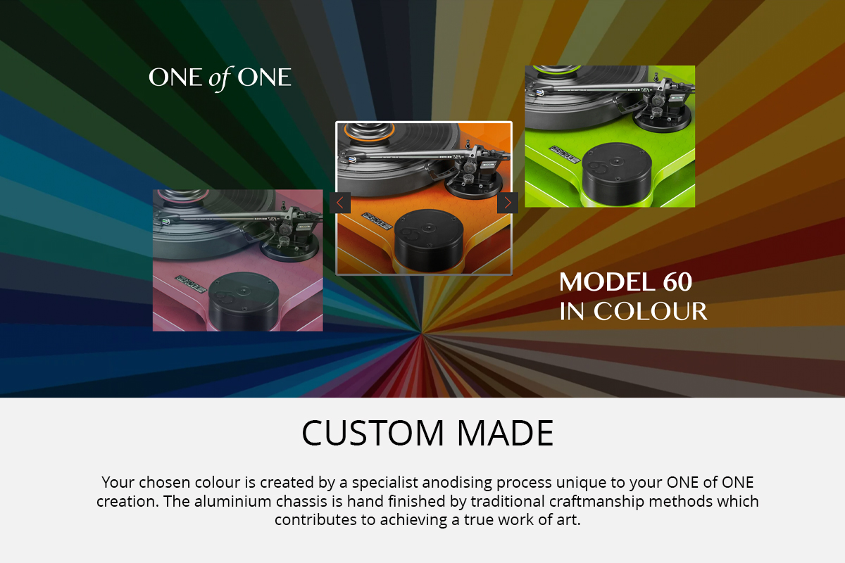 Το SME Model 60 One of One είναι κάτι περισσότερο από ένα πικάπ· είναι η απόλυτη πραγμάτωση της τεχνολογικής και μηχανικής αριστείας, ενσωματώνοντας όχι μόνο την τελειότητα, αλλά και μια δέσμευση για εξατομίκευση, υψηλές επιδόσεις και αισθητική υπεροχή.Κάθε μονάδα κατασκευάζεται κατά παραγγελία, με γνώμονα την εξατομίκευση, την υψηλή απόδοση και την αισθητική υπεροχή.