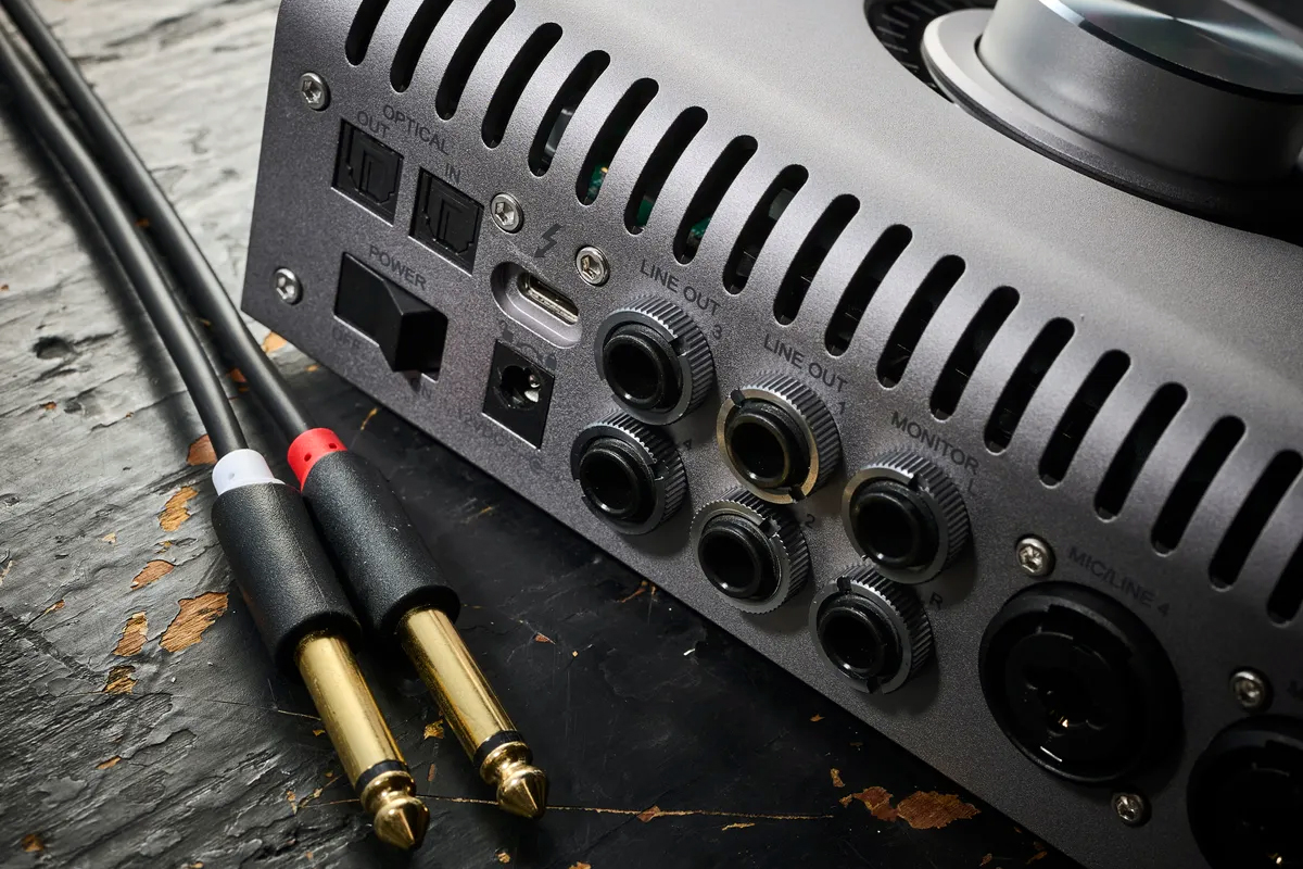 Στο μπροστινό πάνελ, υπάρχουν δύο είσοδοι Hi-Z, που αντικαθιστούν τα κανάλια 1 και 2 στο πίσω μέρος όταν χρησιμοποιούνται και δύο έξοδοι ακουστικών, καθιστώντας το εξαιρετικό για συνεργασίες με άλλους μουσικούς ή πελάτες. Επιπλέον, μπορείτε να παρακάμψετε τους προενισχυτές στις desktop εκδόσεις, επιτρέποντάς σας να χρησιμοποιήσετε τις εισόδους γραμμής ποιότητας mastering απευθείας στους αναβαθμισμένους μετατροπείς.