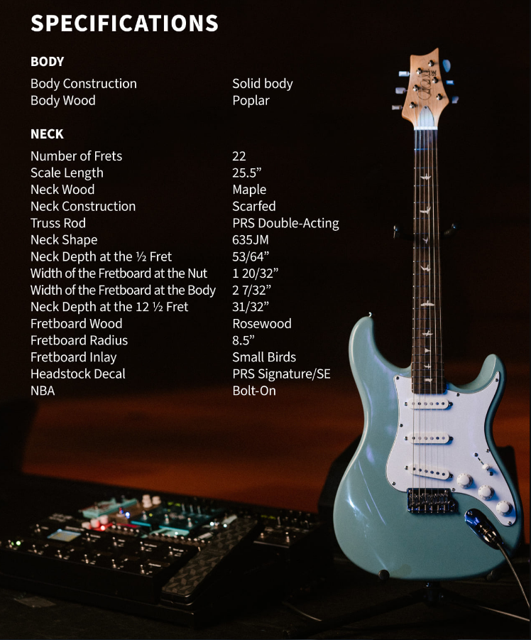 - Μοναδικός σχεδιασμός ανεστραμμένου headstock με κλειδιά vintage στυλ PRS.