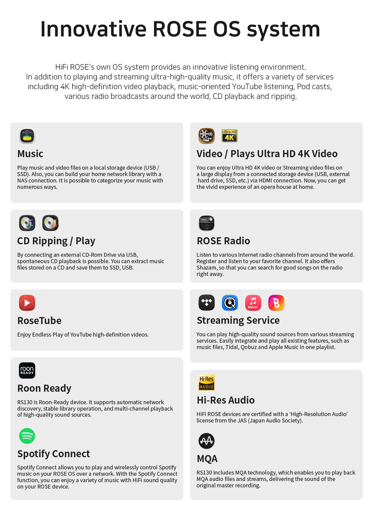 Η HiFi Rose είναι μια εταιρεία που αποτελεί μέρος της Citech, μιας νοτιοκορεατικής εταιρείας που κατασκευάζει custom υλικά και λογισμικά προϊόντα για πάνω από 50 χρόνια. Επειδή ένας από τους επικεφαλής των στελεχών της Citech είναι λάτρης της μουσικής, αποφάσισε να ξεκινήσει ένα διαφορετικό κομμάτι παραγωγής προϊόντων της εταιρείας που να εστιάζει στον υψηλής ποιότητας ήχο με διασκεδαστικά και εύκολα στη χρήση προϊόντα, για να αποδώσει όλη την ποιότητα από τον ψηφιακό ήχο. Το 2017, η HiFi Rose γεννήθηκε για να υπηρετήσει αυτό το καθήκον.
