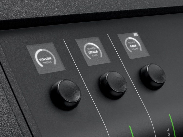 Cycle through volume, treble, and bass for each channel and access ToneMatch presets and reverb settings for Channels 1 and 2. Change positions and the OLED displays automatically rotate.