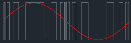 Ένα άλλο, πολύ ενδιαφέρον φορμά χρησιμοποιείται στους δίσκους Super Audio CD της Sony, οι οποίοι προδιαγράφονται με Pulse Width Modulation, PWM, γνωστή και Pulse Density Modulation (PDM), που θα μπορούσαμε να αποδώσουμε στην Ελληνική ως διαμόρφωση πυκνότητας παλμών. Εν συγκρίσει προς την PCM, η διαμόρφωση PDM είναι μια τελείως διαφορετική προσέγγιση. Η Sony έχει λανσάρει το δικό της ψηφιακό δίσκο με αυτού του είδους τη διαμόρφωση, καθώς και συγκεκριμένη κωδικοποίηση εγγραφής, γνωστή με την ονομασία DSD, Direct Stream Digital. Η διαμόρφωση DSD δίνει μια παλμοσειρά χρονισμένη στους 2,8224MHz, κι έτσι κάθε παλμός μπορεί να έχει ελάχιστη χρονική διάρκεια 1/2.822.400 δευτερόλεπτα, και από εκεί και μετά, ακέραιο πολλαπλάσιό της. Με βάση αυτή τη σύλληψη, στα σημεία καμπής της ημιτονοειδούς τάσης υπάρχει πυκνή συγκέντρωση παλμών, ενώ τα μέγιστα και ελάχιστα εξάγονται από παλμούς μεγαλύτερης διάρκειας, αναλόγως και της συχνότητας βεβαίως. Έτσι, η διαμόρφωση PDM δεν χαρακτηρίζεται, ούτε από μήκος λέξης, ούτε από συχνότητα δειγματοληψίας. Παρακαλώ, δείτε την επομένη εικόνα.