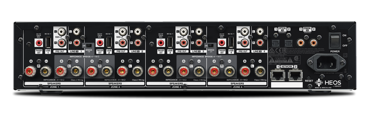 Σχεδιασμένο από εμπειρογνώμονες εξατομικευμένης ολοκλήρωσης για εμπειρογνώμονες εξατομικευμένης ολοκλήρωσης, το HEOS Drive HS2 είναι ένα μοναδικό οικιακό σύστημα διανομής ήχου 4 ζωνών με 8 κανάλια Class D ενίσχυσης, όλα αυτά μαζί σε ένα μόνο πλαίσιο ύψους 2RU (2 μονάδων ύψους για ερμάριο), που διαθέτει τόσο Dolby Digital όσο και Dolby Digital+ αποκωδικοποίηση με stereo downmixing.