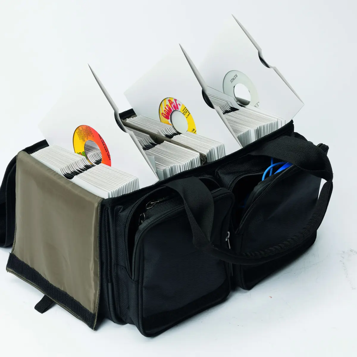 Magma 45 record-bag 150 τσάντα μεταφοράς ιδανική για έως και 150 x 7 ιντσών δίσκους βινυλίου. Κατασκευασμένη από 100% αδιάβροχο 1680D Ballistic-Nylon με ενσωματωμένα τοιχώματα PVC για απόλυτη προστασία και σταθερή εφαρμογή. Χωρίζεται σε δύο ίσα τμήματα, έτσι ώστε να μπορούν να οργανωθούν τα βινύλια εμπρός-πίσω ή πλάι-πλάι. Διαθέτει Επιπλέον χώρος για διάφορα αξεσουάρ όπως ακουστικά, Needle-case κ.α.