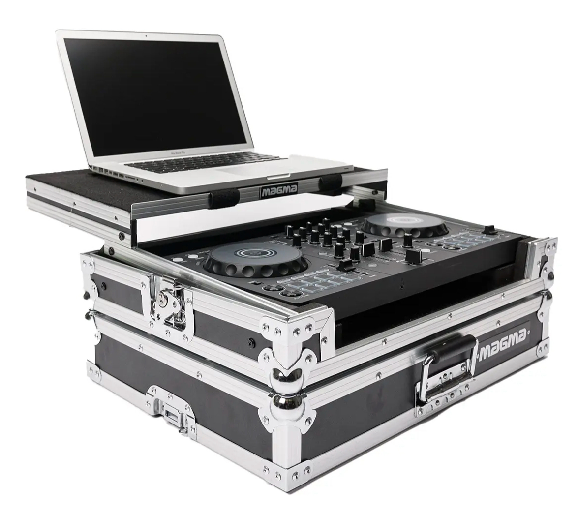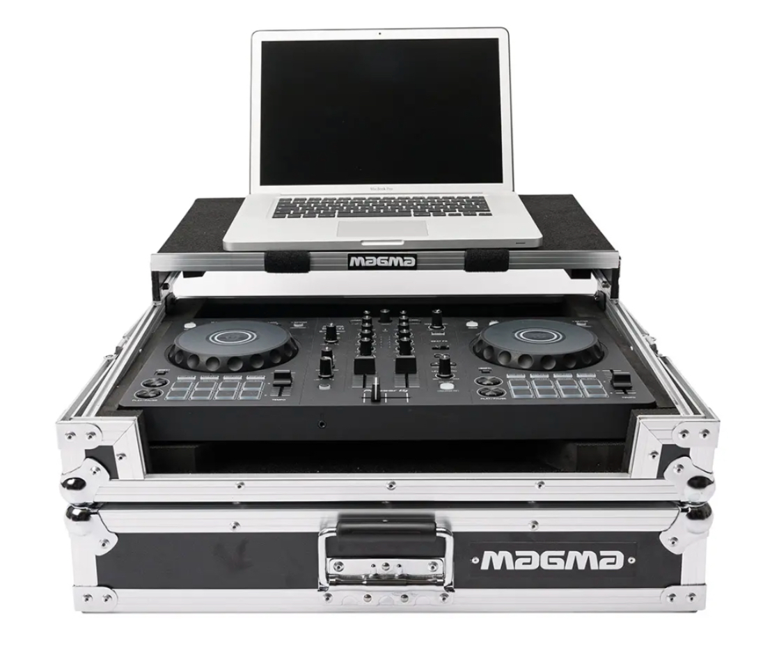 Magma DJ-Controller Workstation για τα DDj-FLX4, DDJ-400 και DDJ-SB3 controller της Pioneer με συρόμενη επιφάνεια για την τοποθέτηση laptop. Θήκη μεταφοράς κατασκευασμένη από υψηλής ποιότητας κόντρα πλακέ 6mm με επικάλυψη βινυλίου, αλουμινένιο σκελετό υψηλής αντοχής και κλειδαριές τύπου πεταλούδα. Οι σφαιρικές γωνίες της θήκης κρατάνε με ασφάλεια το καπάκι όταν τοποθετηθεί απο πάνω δίνοντας ύψος αν χρειαστεί. Η συρόμενη επιφάνεια τοποθέτησης του laptop αλλά και η βολική πρόσβαση των καλωδίων επιτρέπει στα controllers να παραμένουν στη θήκη τους προσφέροντας ασφάλεια αλλά και μειωμένο χρόνο αποθήκευσής. Τα τοιχώματα της θήκης έχουν παχύ αφρώδες υλικό για μέγιστη ασφάλεια του αγαπημένου σας controller.