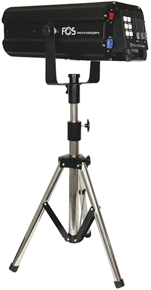 High Power Led Follow Spot with 300 watt Led , CTC linear, Iris, Dimmer, 5 colors red, green, blue, yellow, white , adjustable focus, Powercon In, Flight case with wheels and stand included.