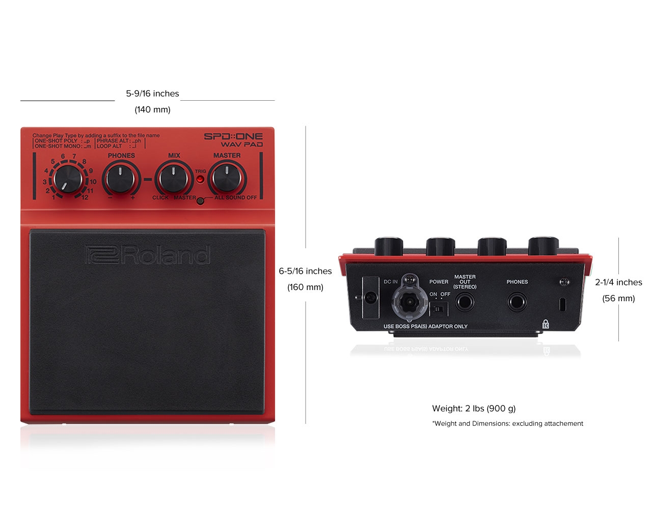 Powered by batteries or AC, the portable SPD::ONE WAV PAD can be used on the floor or a tabletop, or mounted to any rig or drum setup with the included adapter. Operation is simple, even for those musicians who are not technical; just by using four knobs on the control panel, you can change the sound, volume, balance, and more. Whether you’re a drummer, percussion player, guitarist, DJ, or vocalist, the SPD::ONE WAV PAD is a simple and flexible way to expand your sound palette and invigorate your performances.