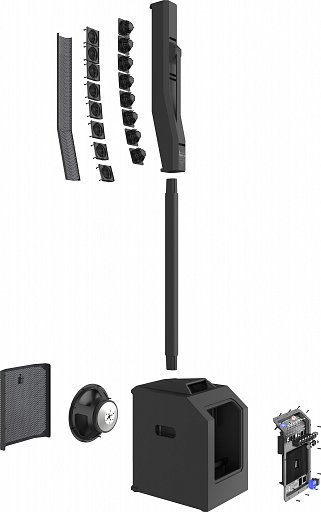 Αυτοενισχυόμενο σύστημα (set) ηχείων, που αποτελείται από 1 ηχοστήλη με 8 μεγάφωνα 3,5″ νεοδυμίου και 1 subwoofer με woofer 12″. Ενισχυτής 1000W RMS class D με limiter και διασπορά 120 x 40 μοίρες. Aπόκριση συχνότητας 37-20000Hz, 127dB max SPL. Εφοδιάζεται με ψηφιακό mixer 8 εισόδων (4x XLR/TRS combo mic/line inputs, 1x XLR/TRS combo stereo line input, 1x RCA, 1x 3.5 mm stereo, 1x Hi-Z instrument input. Mix out και Aux out με Balanced XLR και έξοδος QuickSmart Link για σύνδεση με καλώδιο δικτύου CAT-5 μέ δεύτερο σετ EVOLVE 50M για διπλασιασμό εισόδων και έλεγχο μέσω της εφαρμογής QuickSmart Mobile wireless control.