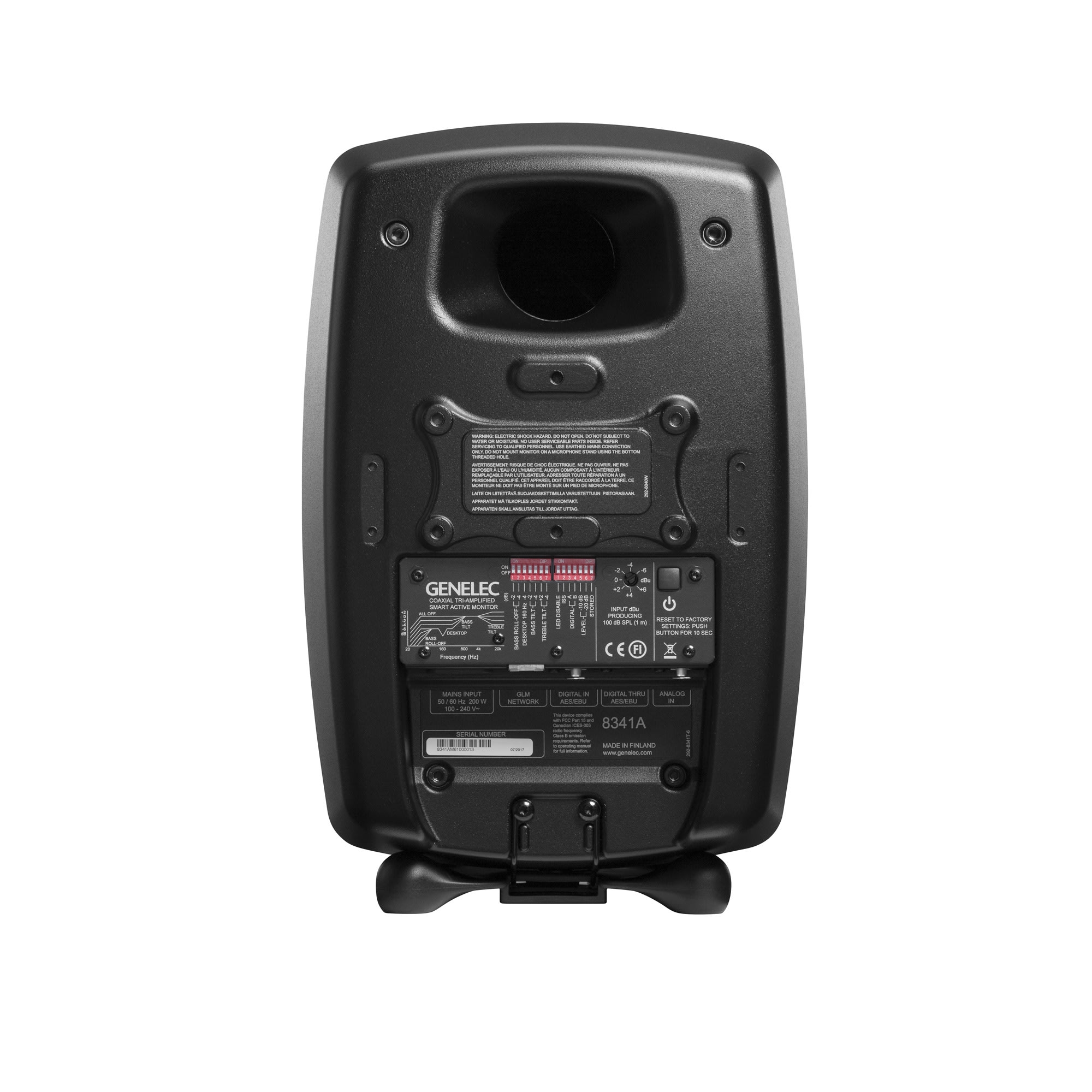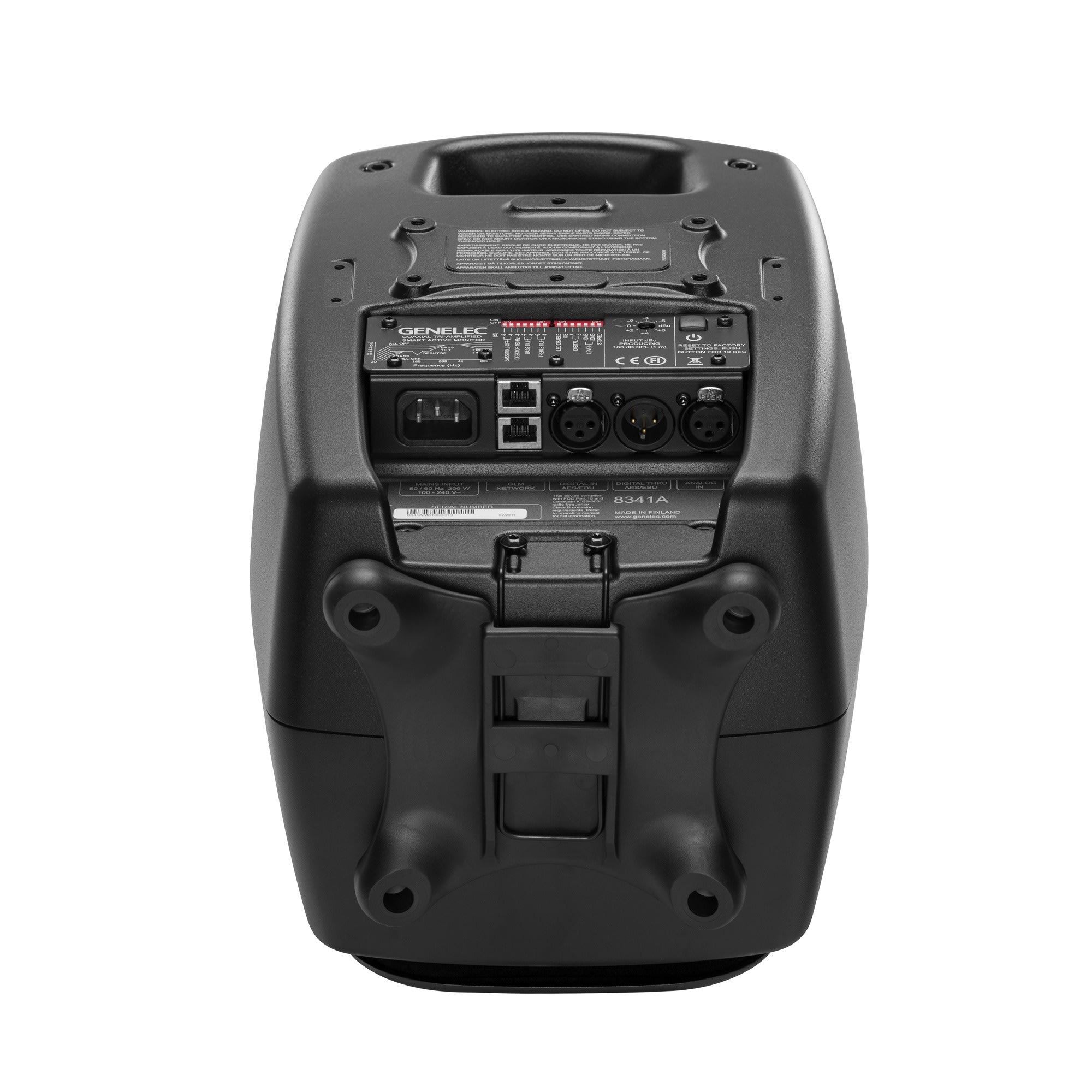 Διαθέτει 2x Oval Woofers 6 5/8 x 3 1/2 inch + Coaxial Midrange/Tweeter MDC 3 ½ / 3/4 inch + DCW. Frequency Response: 38 Hz - 37 kHz, 110 SPL Διαθέτει (Tri-Amp) τρεις ενισχυτές ξεχωριστούς 250W για το woofer, 150W για το midrange και 150W για το tweeter. Διαθέτει ψηφιακή (AES/EBU) είσοδο και Thru καθώς και αναλογική είσοδο Ballanced XLR. Διαθέτει δύο θύρες δικτύου ελέγχου GLM (Genelec Loudspeaker Manager). Διακόπτης On/Off και ρυθμιστικά λειτουργίας. Βάρος 9.8kg.