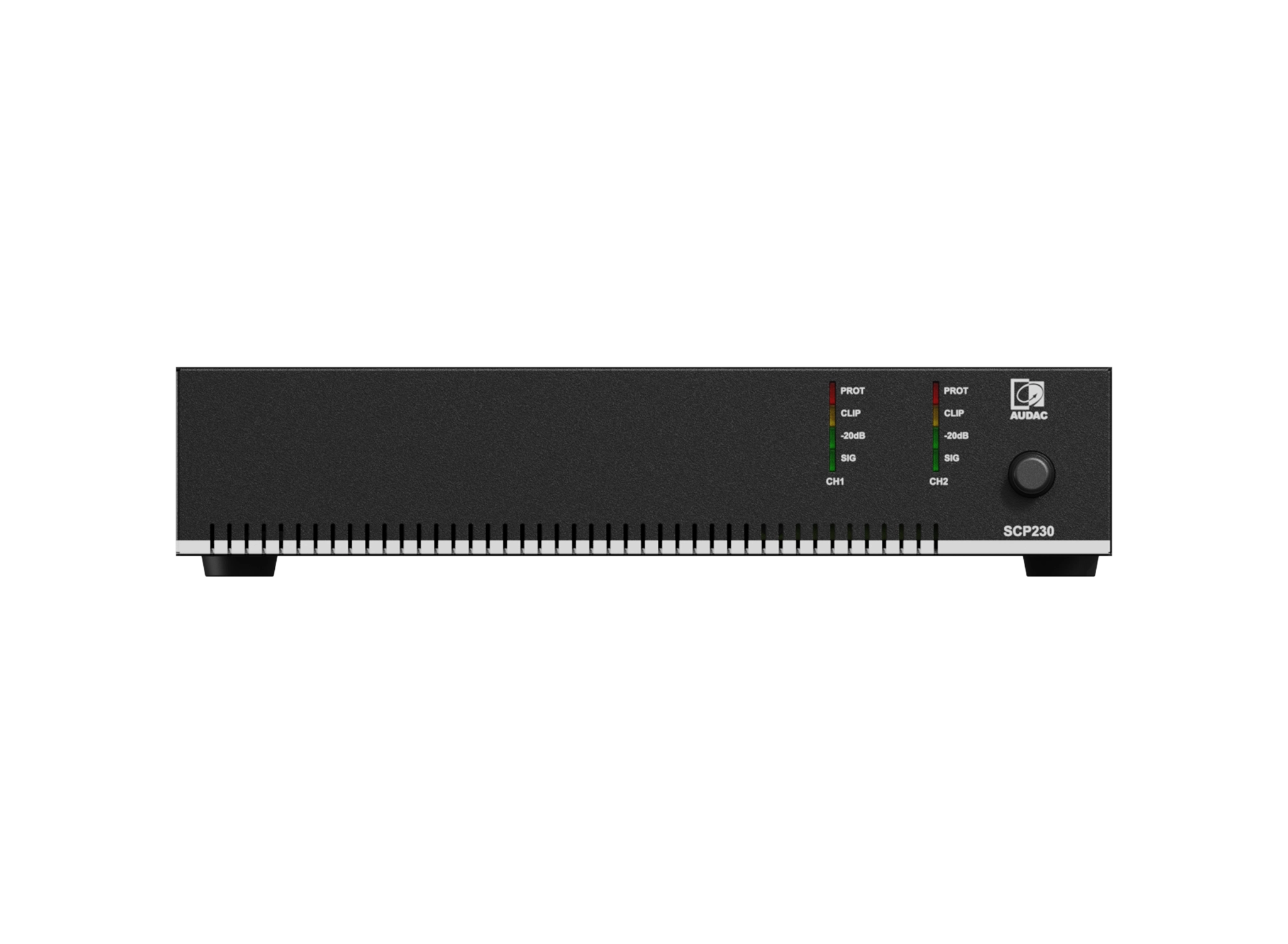 The SCP series is a range of extremely powerful compact dual-channel power amplifiers for commercial use. These half 19” devices can be used in stereo low impedance or 70/100V bridge mode. There are 3 different models to serve a wide range of applications with power ratings that vary between 240W up to 600W in a half 19” rack space housing.