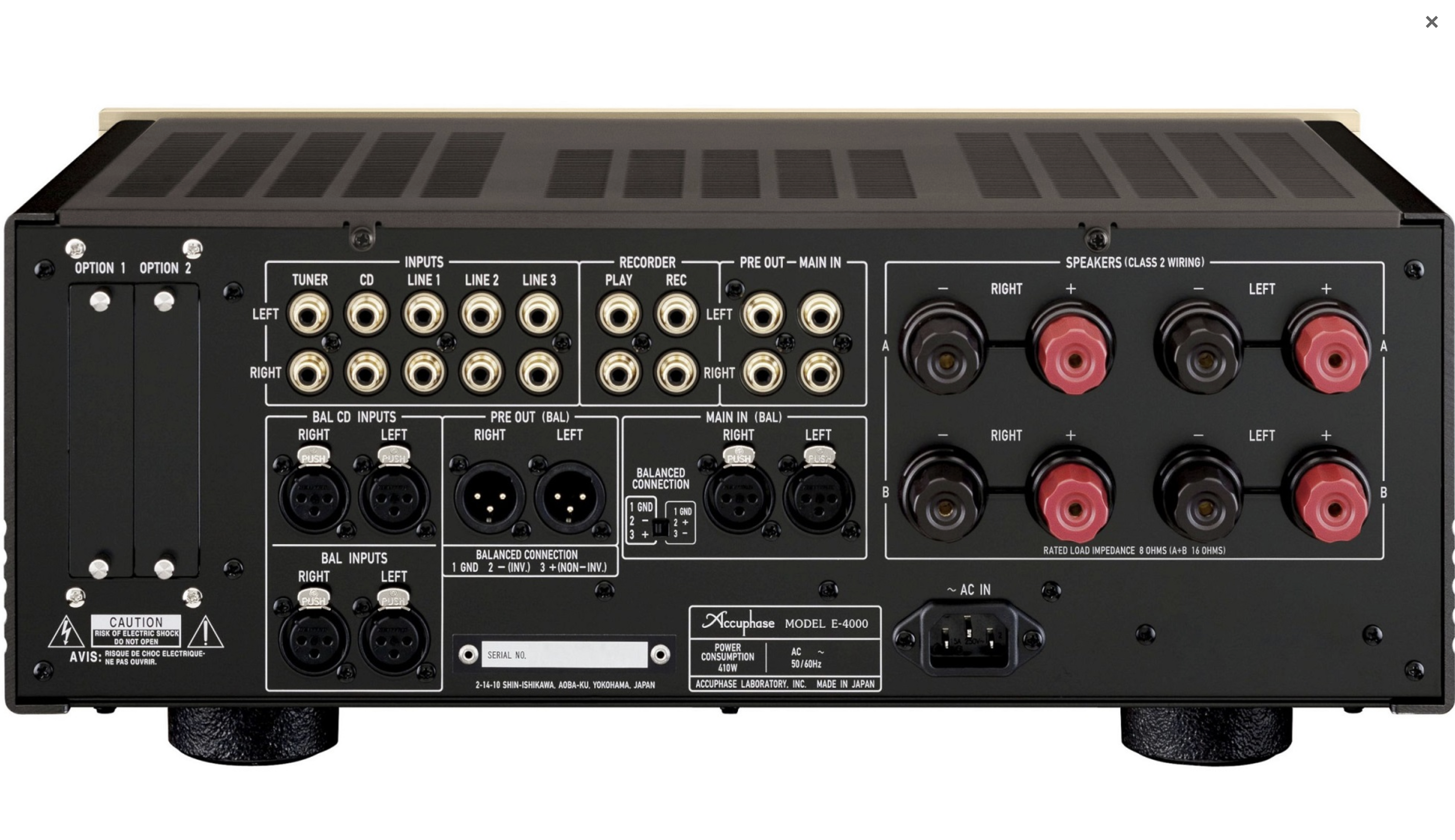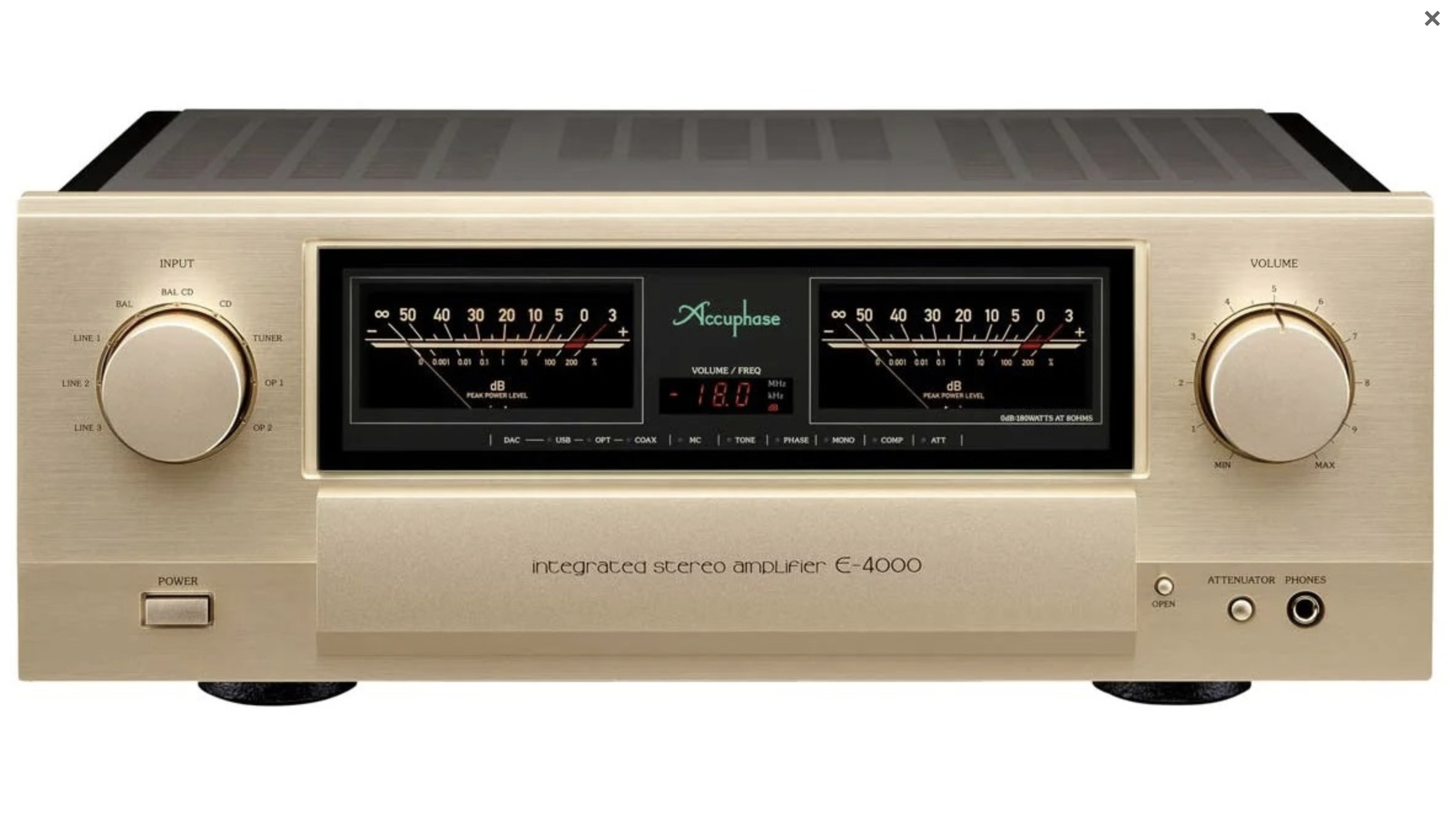 The E-4000 integrated amplifier has emerged from separate amplifier technologies. The preamplifier section features AAVA using ANCC to allow for volume adjustments that maintain high levels of vibrancy. The power amp section employs balanced transmission utilizing the instrumentation amplifier principle to drive noise suppression to its limit. The E-4000 is equipped with a four-fold parallel push-pull configuration of power transistors driven in Class AB in the output stage to extract every last ounce of potential from the speakers and create soundscapes filled with subtlety.