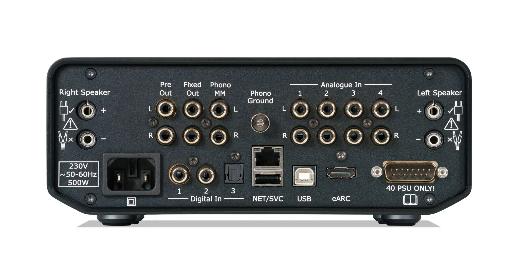 Οι δυνατότητες του 40 AMP δεν περιορίζονται μόνο στη μουσική. Με την προσθήκη της τελευταίας εισόδου HDMI eARC, το οικιακό σας σύστημα αποκτά τώρα τη δυνατότητα να απολαμβάνει τις αγαπημένες σας ταινίες ή σειρές μέσα από τα επιλεγμένα ηχεία σας, καθιστώντας το 40 AMP τον απόλυτο πυρήνα της οικιακής σας ψυχαγωγίας.