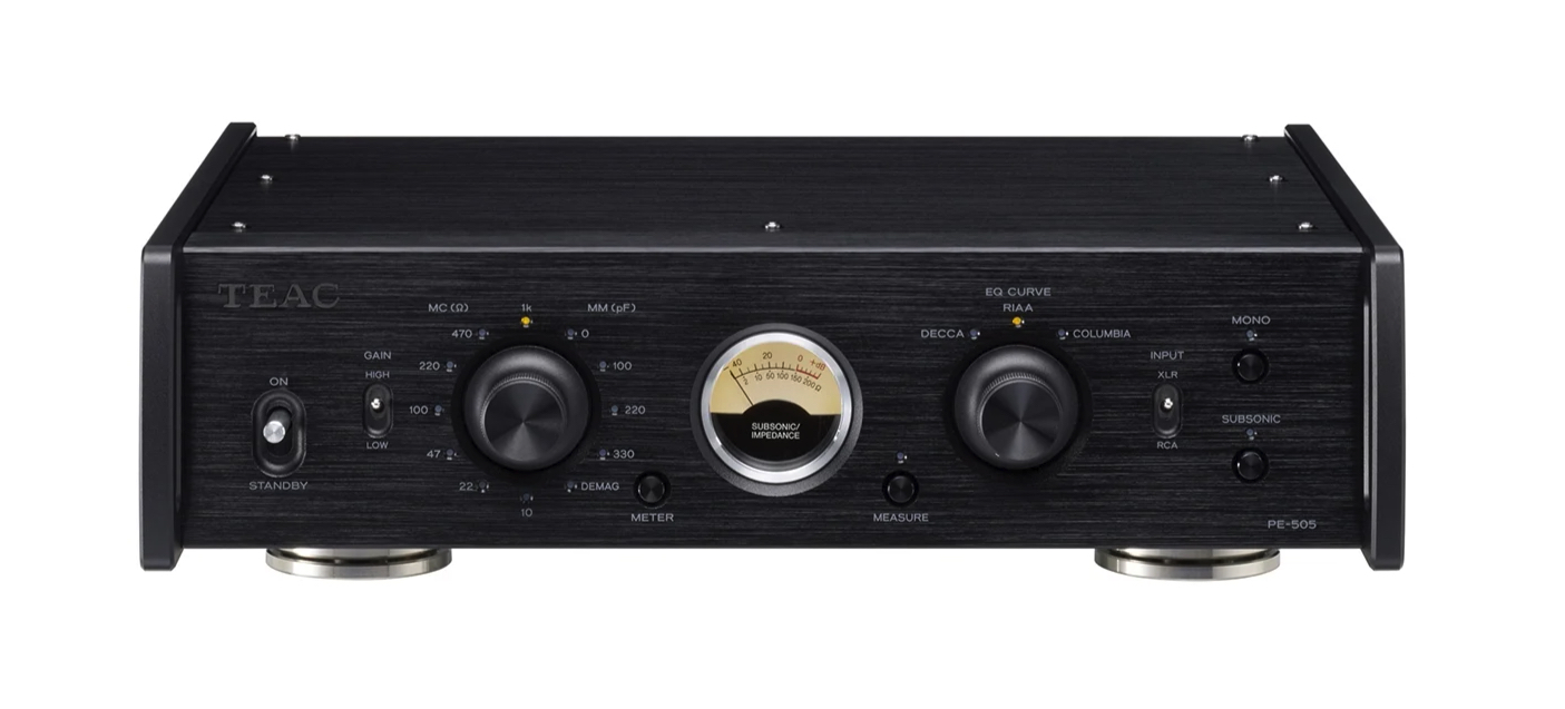 The development of the PE-505 was achieved by relying on TEAC’s audio technology expertise, focusing on recording and playback, with the goal of accurately reproducing the original intent of the recording producers. The PE-505 will amplify even very faint audio signals picked up by the cartridge, process them without coloration, and then deliver them faithfully in order to keep the listener as close as possible to the original sound that was played before it was engraved on the master disc.