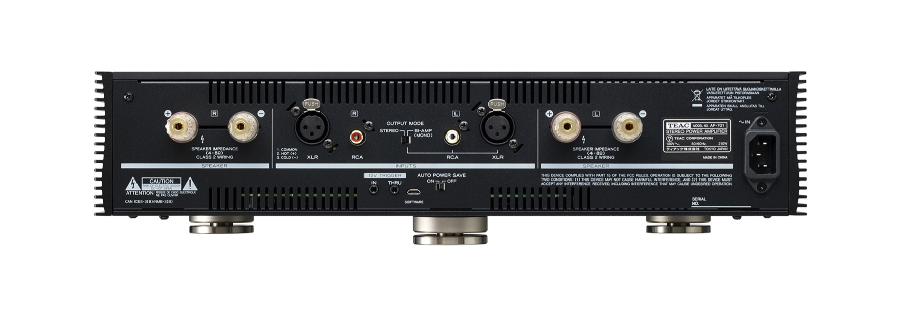 - Input impedance: 64kΩ (in STEREO mode), 32kΩ (in BI-AMP mode)