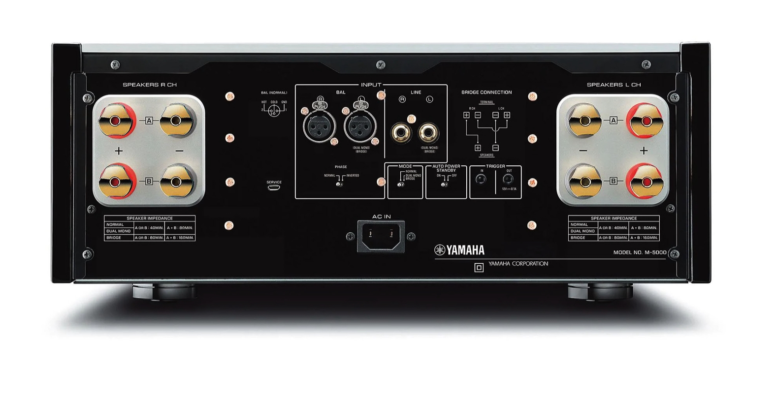 The M-5000 utilises oversized, screw-type speaker terminals to ensure ease-of-use and a secure connection. Cut from a pure brass block, the original Yamaha design denotes a meticulous attention to detail and premier quality.
