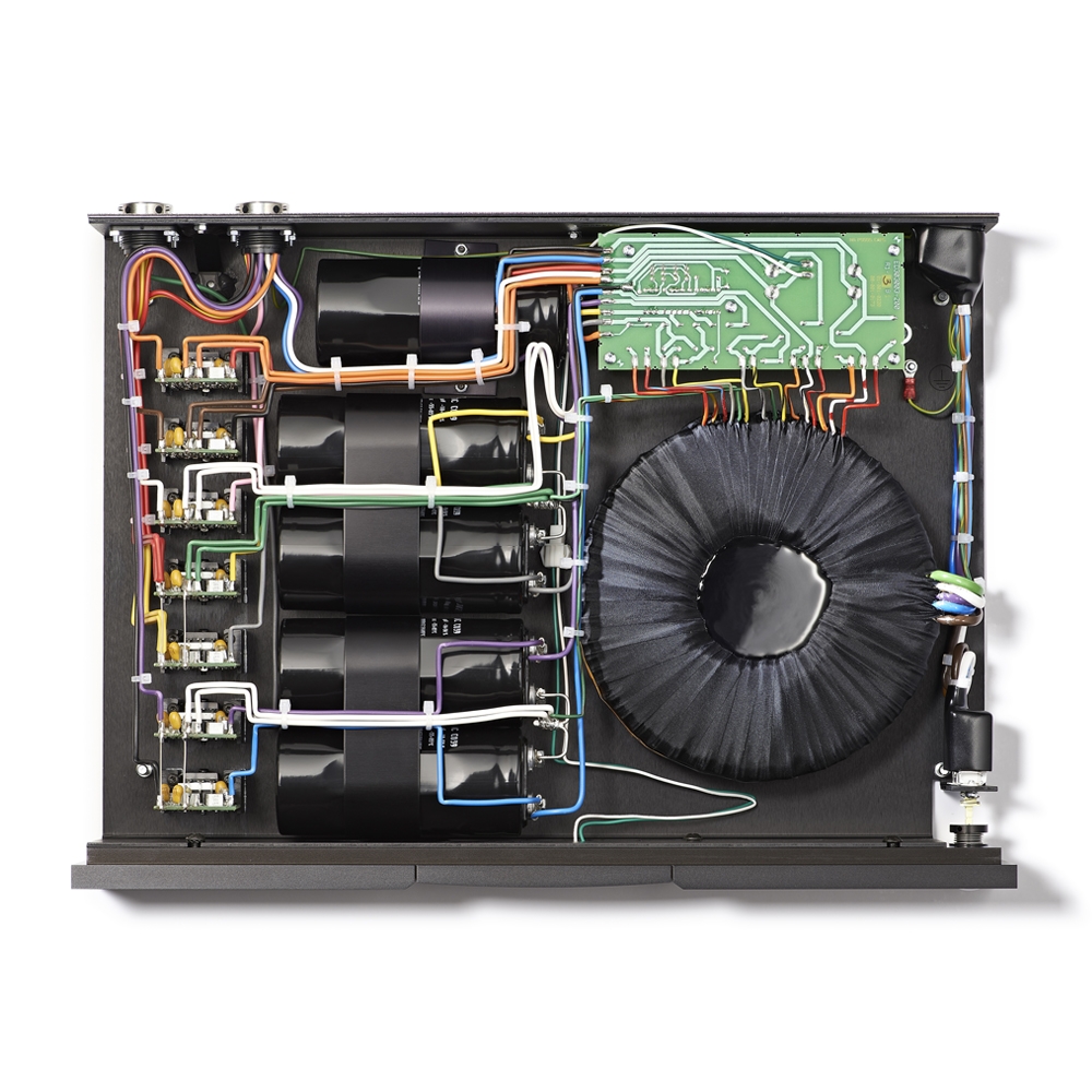 The 555 PS benefits from both our decades of experience and our relentless pursuit of superior sound quality. Its massive transformer, some 40 percent larger than that fitted to our XPS power supply, features five separate windings outputting to seven regulated supply voltages, including an output specifically intended for use with the clock circuitry of our CD555.