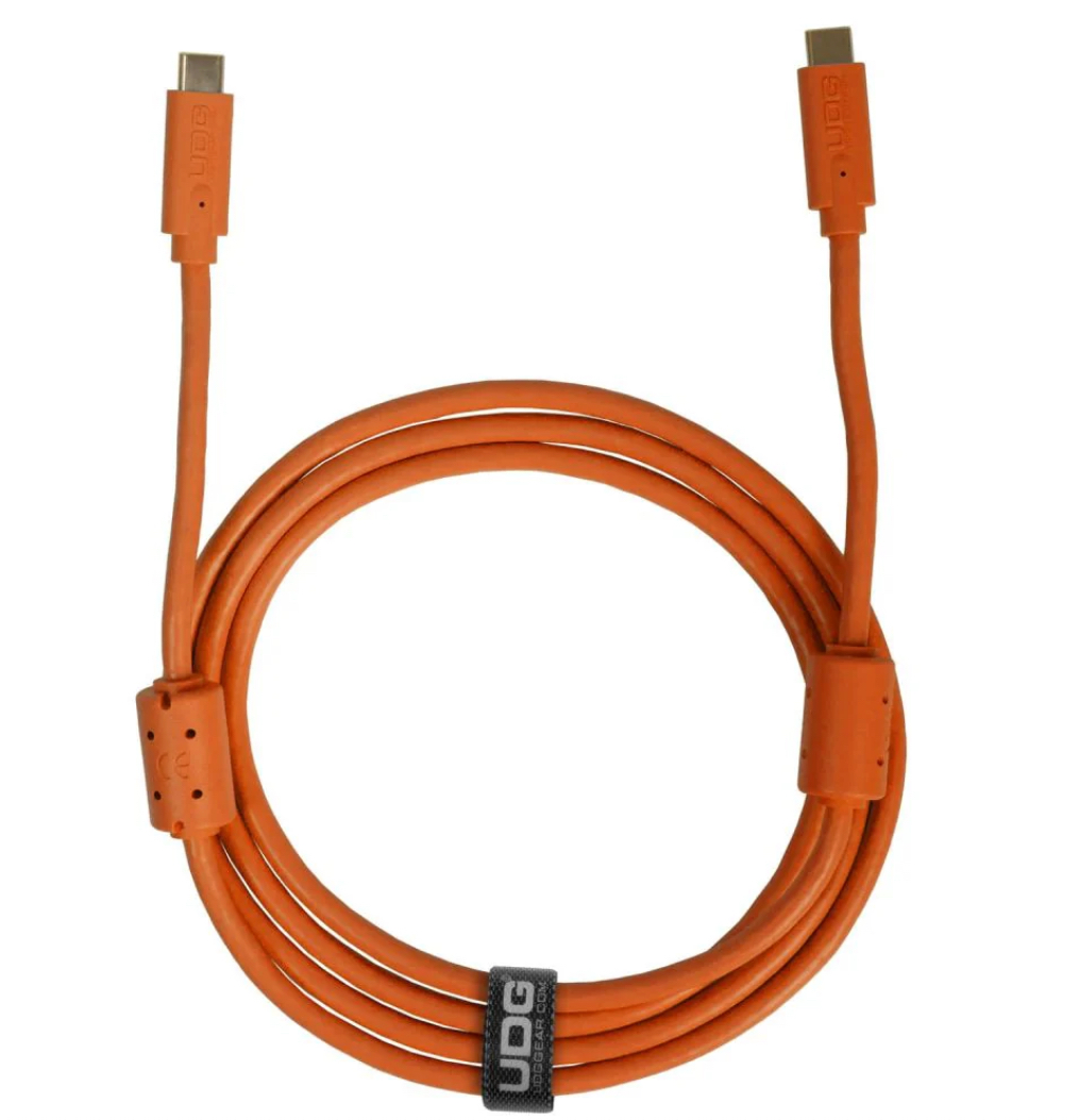 The UDG Gear USB-C cable is built for professional DJs, producers, and audio engineers who need fast, reliable data transmission in demanding environments. Supporting speeds up to 20 Gbps and 4K video @ 60Hz, it's ideal for audio interfaces, MIDI controllers, external SSDs, and modern USB-C devices. The cable features a rugged, multi-shielded PVC build with gold-plated connectors and dual ferrite chokes to reduce interference and ensure clean signal flow. UDG’s ergonomic design includes a Velcro strap for tidy cable management.