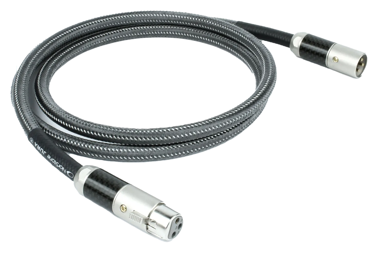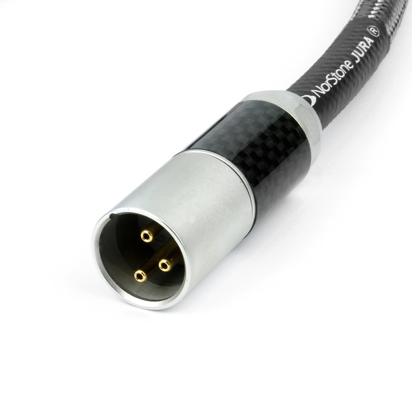 The JURA XLR cable features metal connectors with a bronze-tin alloy contact and Tellurium copper plated with 24k Gold. It uses multi-stranded OFC 4N pure copper conductors with a larger cross section than the Jura cable, and a surface plating of SPC (Silver Plated Copper).