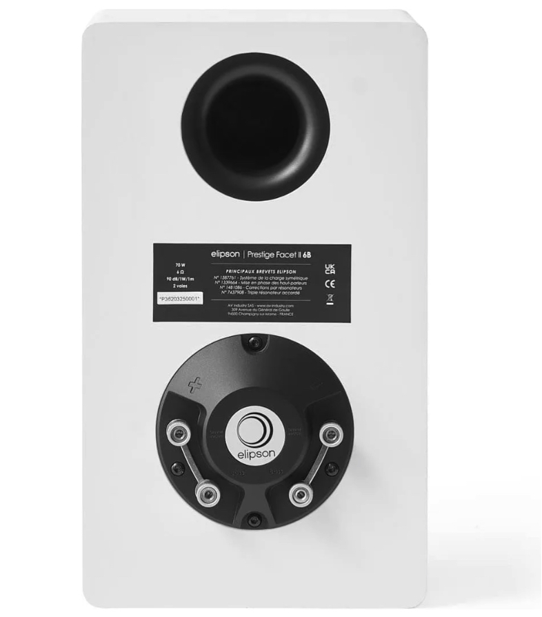 The entry ticket to the Prestige Facet II range, the Elipson Prestige Facet II 6B bookshelf speaker improves on the multi-award-winning best-selling Elipson Prestige Facet 6B by incorporating the brand's latest aesthetic and technical innovations. The cabinet benefits from structural reinforcements for increased rigidity and better driver control. The crossover has been completely redesigned for increased transparency and to exploit the full musicality of the 14 cm mid/bass driver and its 25 mm tweeter. Emblematic of the range, a faceted crown surrounds the drivers to reduce diffraction and maximize linearity. The assurance of precise reproduction in hi-fi as well as home cinema!