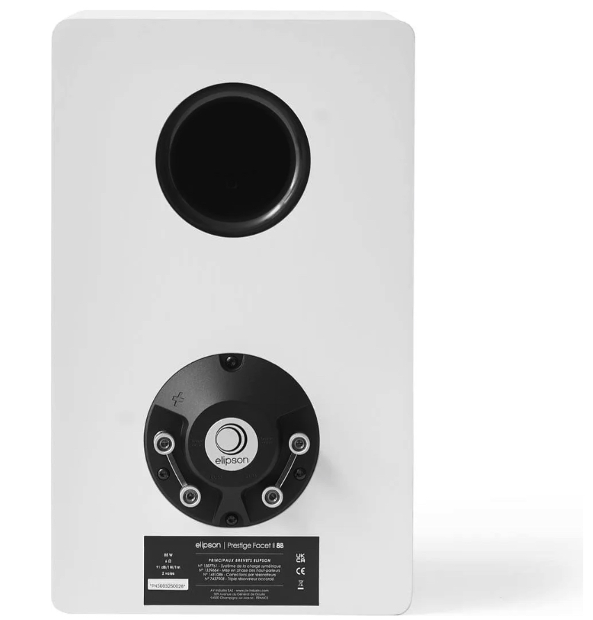 The Elipson Prestige Facet II 8B bookshelf speaker improves on the multi-award-winning best-selling Elipson Prestige Facet 8B by incorporating the brand's latest aesthetic and technical innovations. The cabinet benefits from structural reinforcements for increased rigidity and better driver control. The crossover has been completely redesigned for increased transparency and to harness the full musicality of the 17 cm mid/bass driver and its 25 mm tweeter. A signature of the range, a faceted crown surrounds the drivers to reduce diffraction and maximize linearity. The assurance of precise reproduction in hi-fi and home theater!