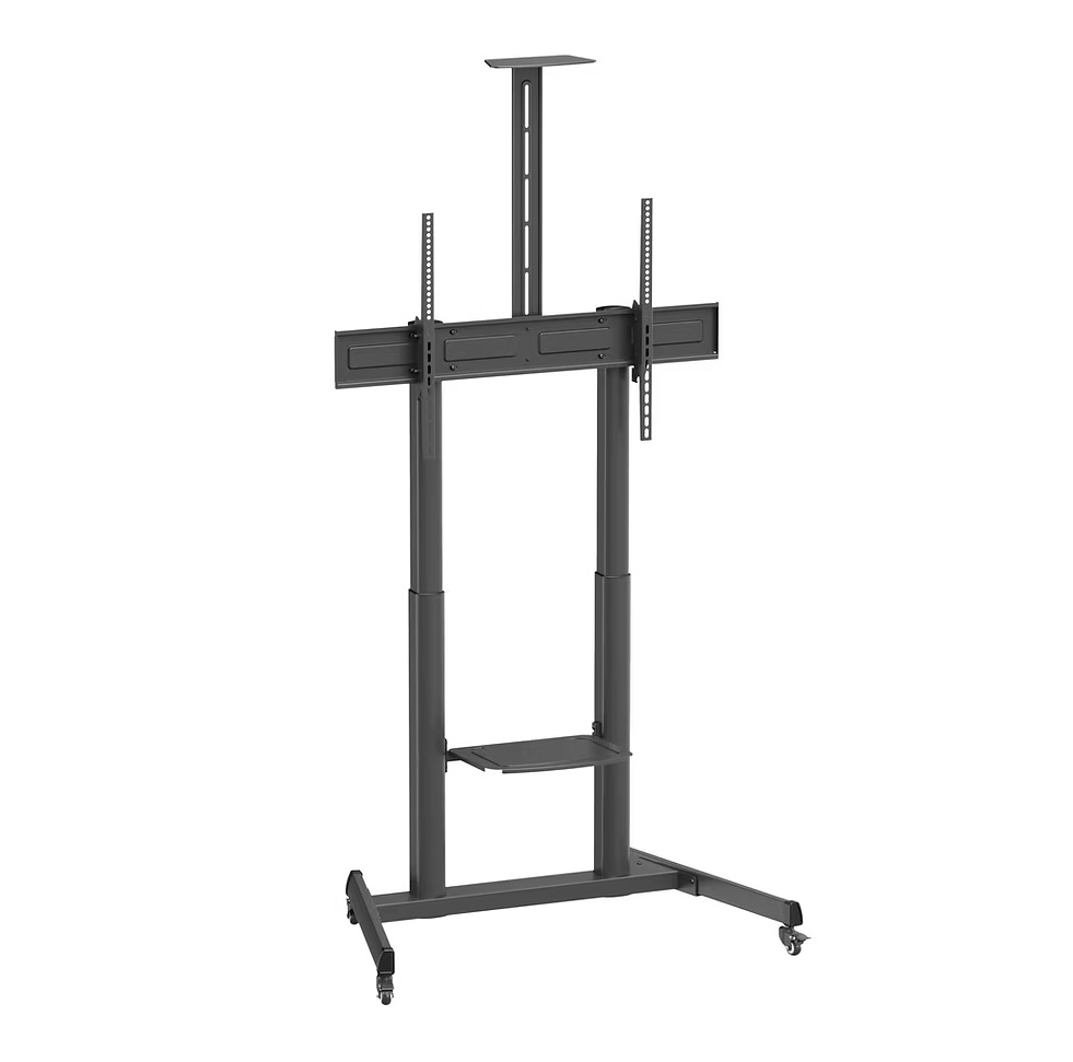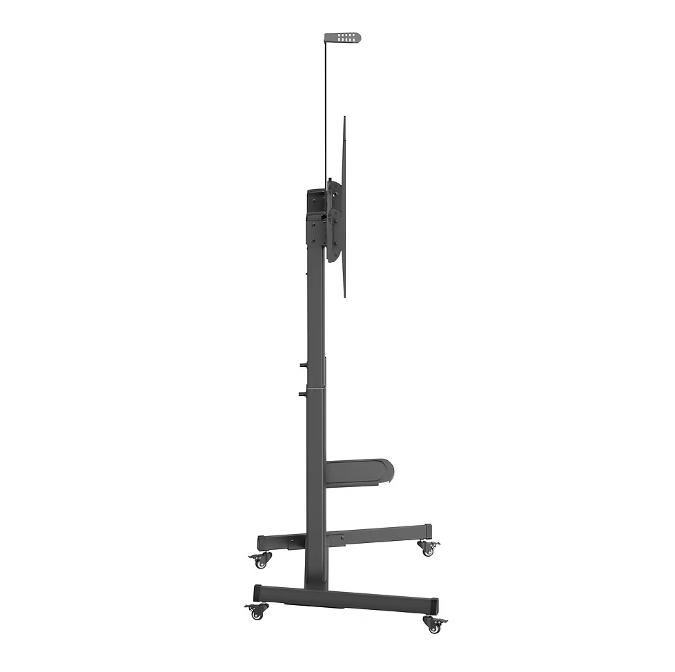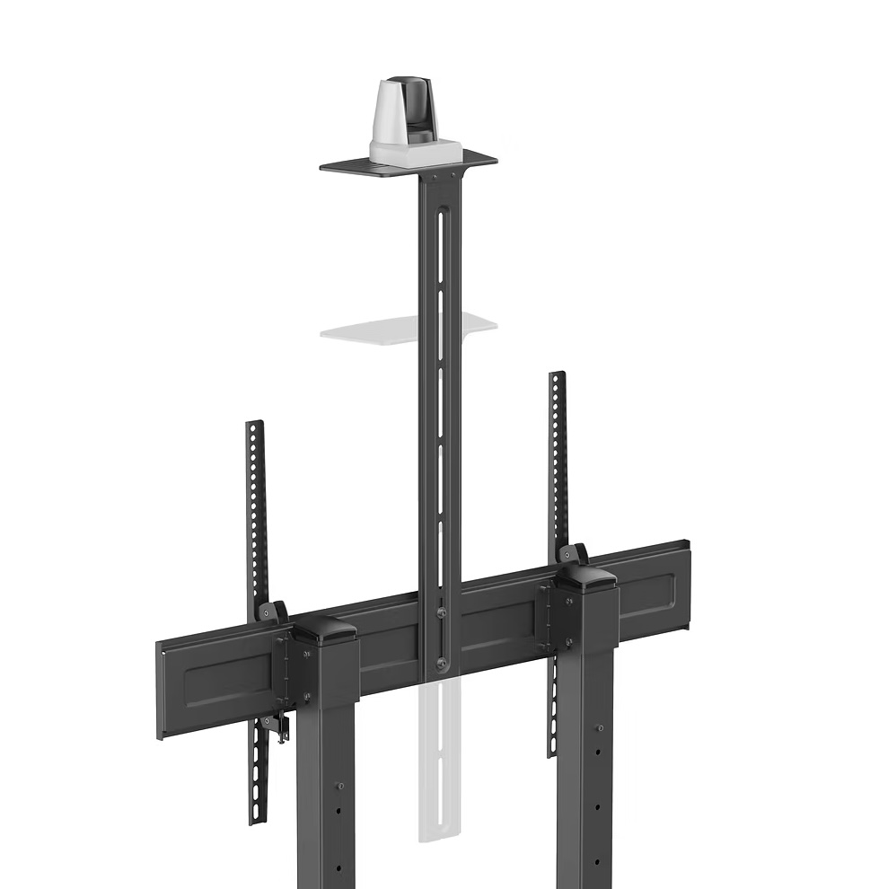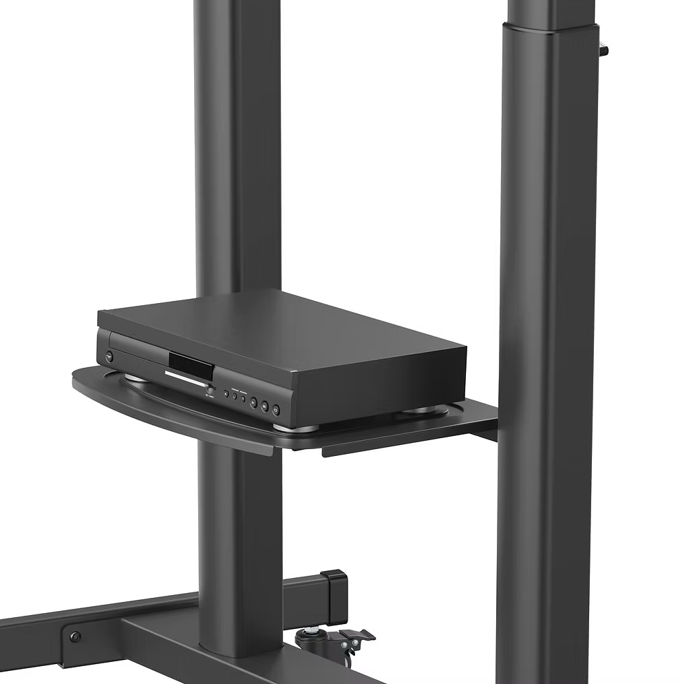 It also includes an adjustable shelf for your equipment supporting up to 5 kg and a height-adjustable camera platform for optimal videoconferencing. Finally, its lockable casters ensure both mobility and stability with complete safety.
