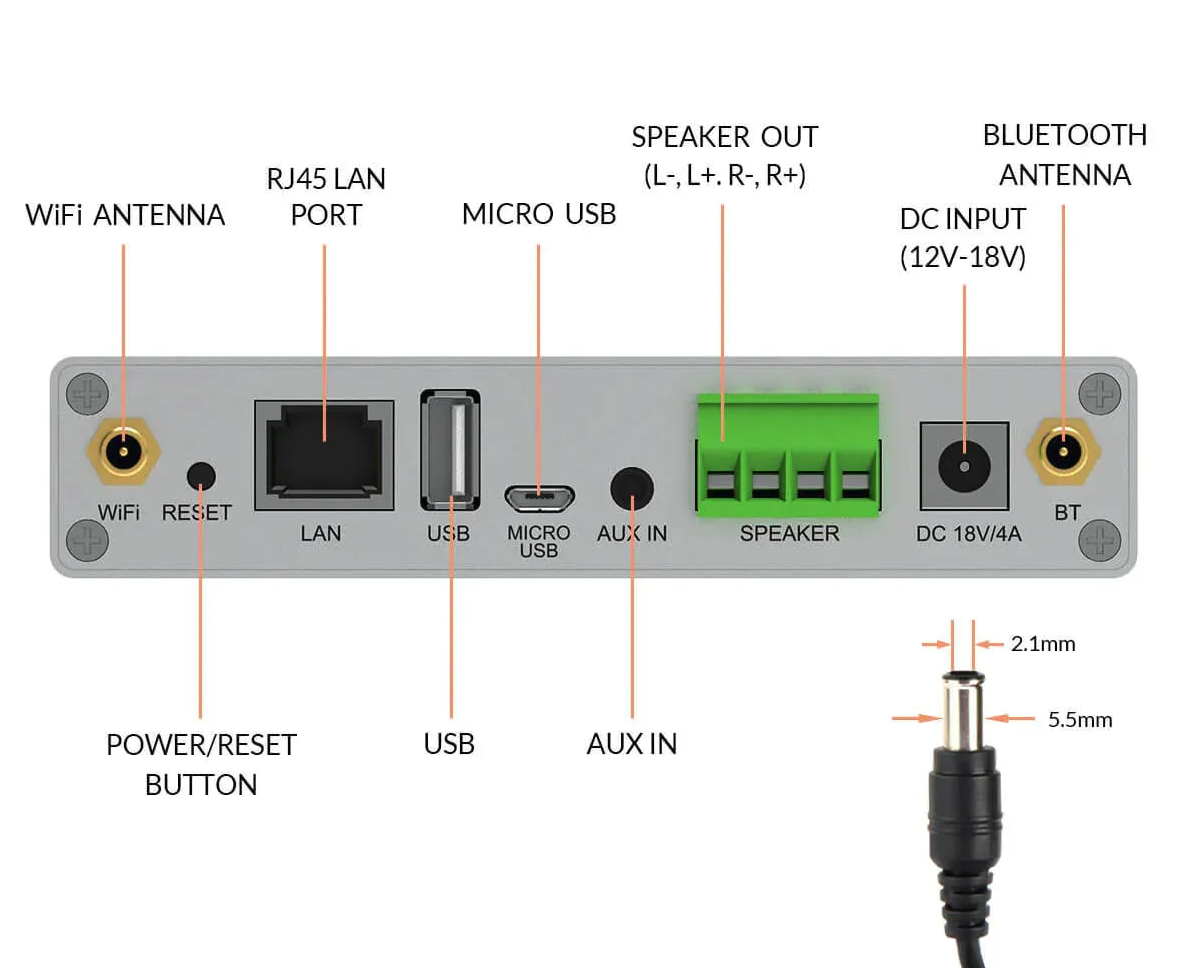 Arylic A30+, mini στερεοφωνικός ενισχυτής 2 x 35W στα 4Ω και 2 x 18W στα 8Ω με δυνατότητα ασύρματης αναπαραγωγής ήχου και σύνδεση με ηχεία παθητικού τύπου. Υποστηρίζει Airplay, Spotify Connect, Bluetooth 5.0 για stream-άρισμα και συνδέεται με DLNA kai UPnP. Παρέχει πρόσβαση σε υπηρεσίες streaming όπως Spotify, Apple music, Amazon Music, Tidal κ.α