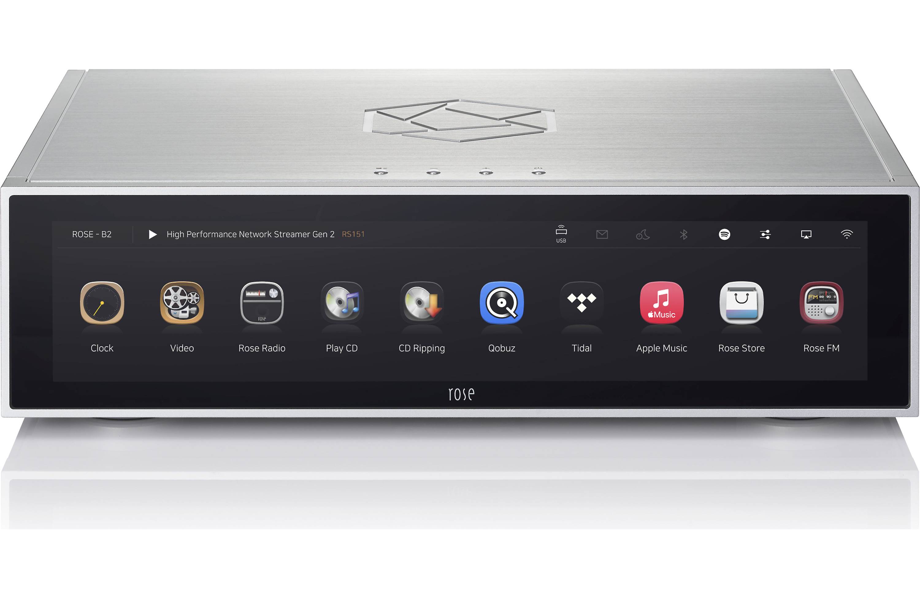 Η αποκλειστική εφαρμογή RoseTube παρέχει επιλεγμένα μουσικά βίντεο, ζωντανές παραστάσεις και πρόσβαση στον προσωπικό σας λογαριασμό στο YouTube, ενώ οι συνδρομητές του TIDAL μπορούν να απολαύσουν μια εκτενή βιβλιοθήκη μουσικών βίντεο και αποκλειστικό βίντεο περιεχόμενο. Το RS151 διαθέτει επίσης αναβαθμισμένη συνδεσιμότητα με HDMI eARC, βελτιωμένα δείγματα COAX & AES/EBU και Bluetooth 5.4 με aptX για καλύτερη ασύρματη απόδοση.