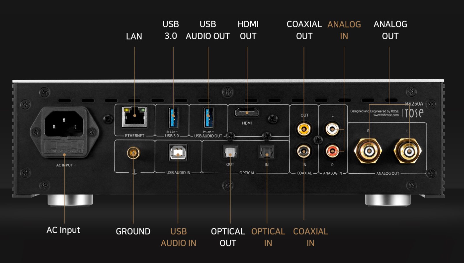 The HiFi Rose RS250A is a Network Streamer, DAC, and pre-amplifier that allows you to immerse yourself in the sonic tapestries of timeless albums, as well as the engaging graphics and dynamic performances of the latest music videos. The RS250A is ideal for the voracious music fan who wants to access entertainment with a simple touch of the finger.RS250A utilizes rigid aluminum panels to isolate micro-vibrations and maximize thermal efficiency.