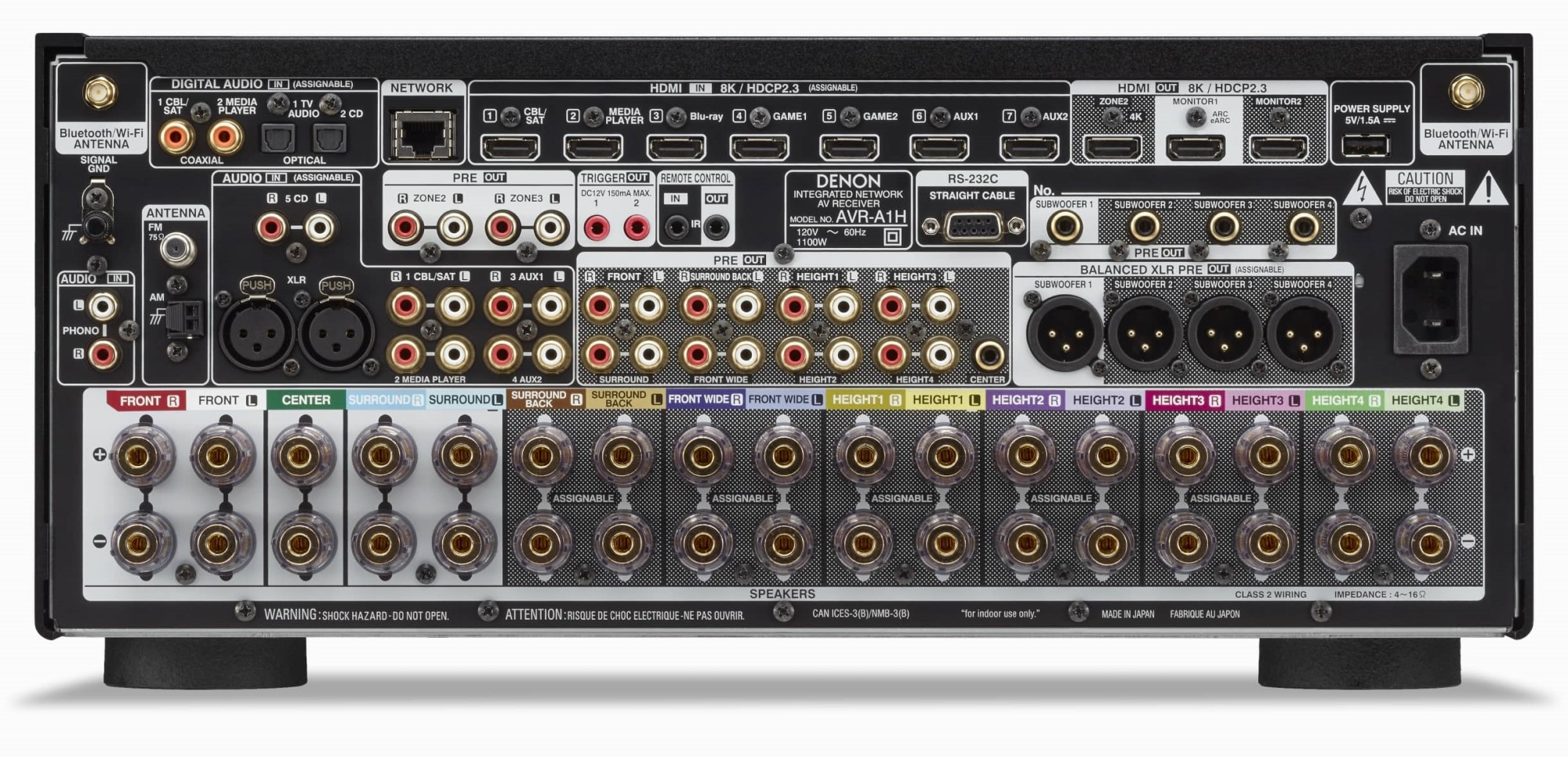 Με 15 κανάλια ενίσχυσης, τον πιο ισχυρό μετασχηματιστή μας, προσεκτικά επιλεγμένα εξαρτήματα και βαριά κατασκευή υψηλής ακαμψίας, ο AVC-A1H υποστηρίζει διαμόρφωση ηχείων μέχρι 9.4.6 και προσφέρει επαγγελματική κινηματογραφική εμπειρία στο δικό σας σύστημα home cinema. Σχεδιάστηκε και κατασκευάστηκε στις εγκαταστάσεις της Denon στην Ιαπωνία.
