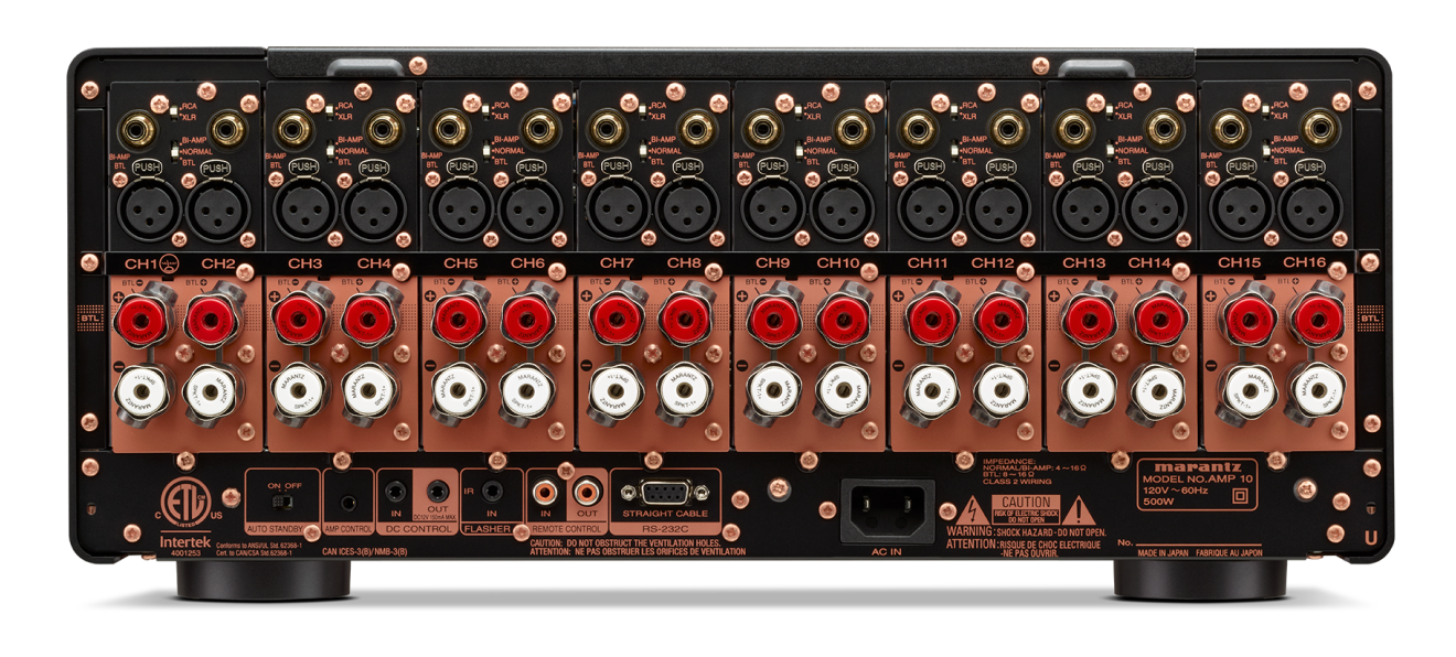 AMP 10 is engineered using best-inclass technologies to enable extraordinary power output; high channel count; and the dynamic, rich, warm sound for which Marantz is highly renowned.