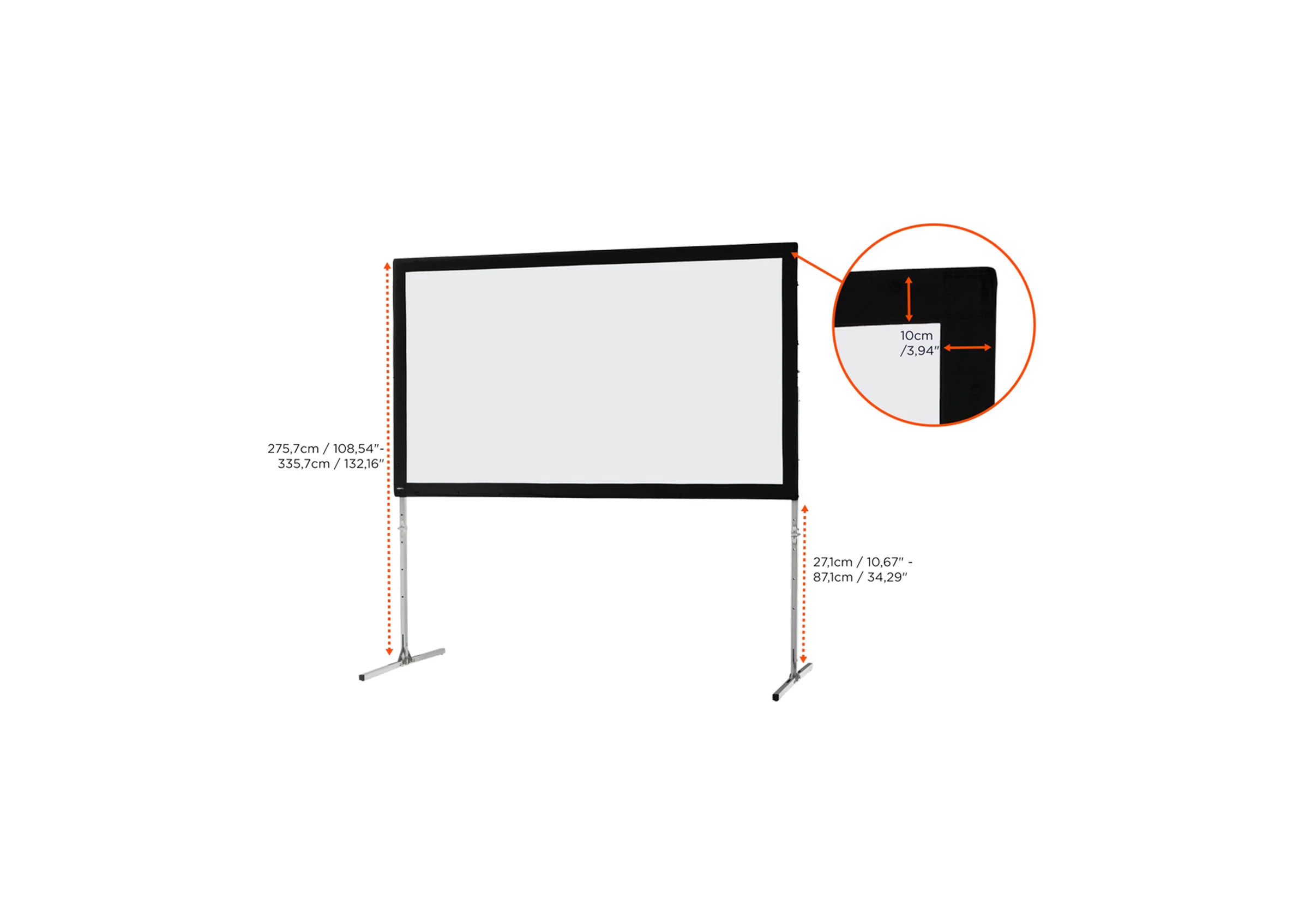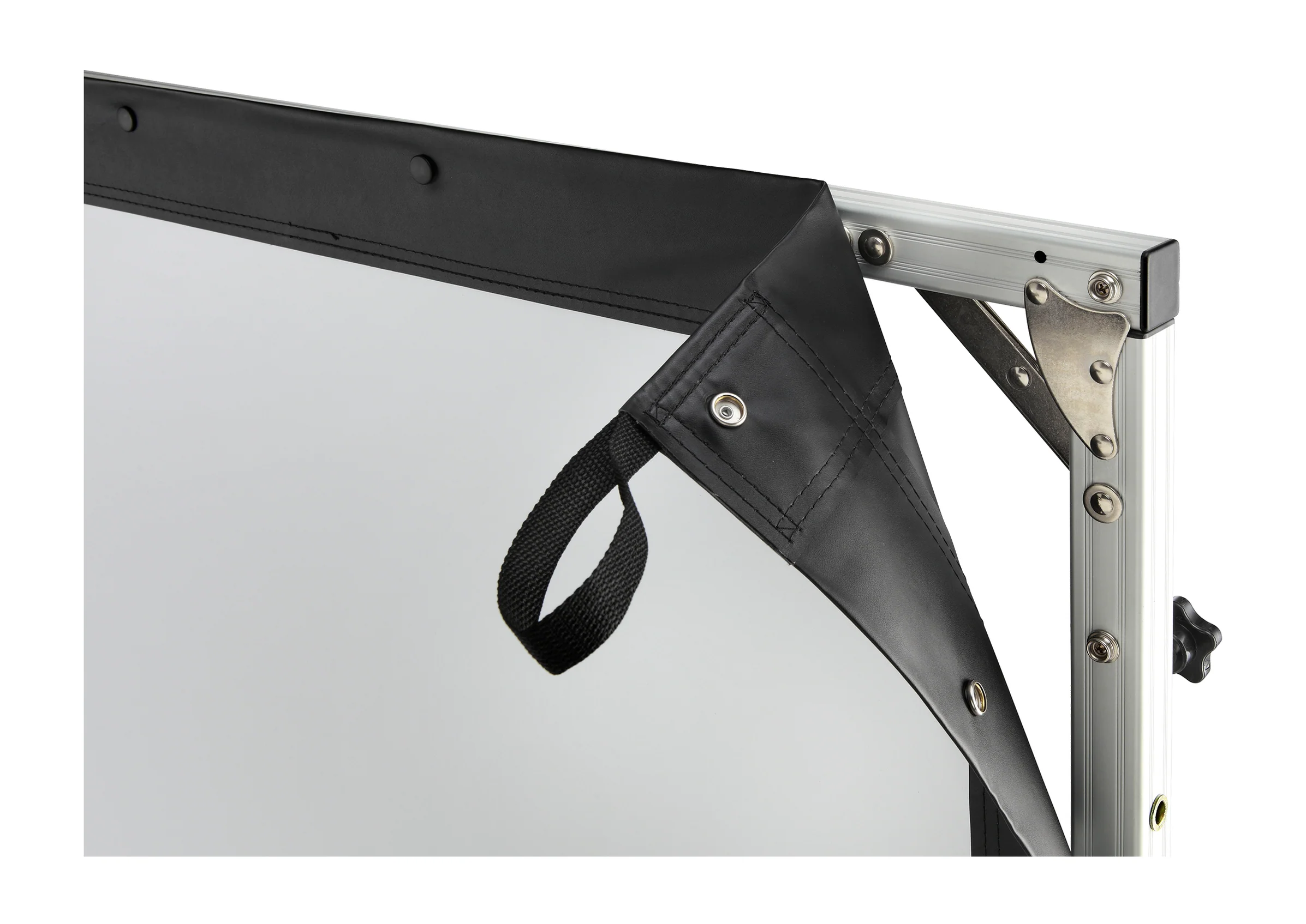 The celexon F Screen can be set up in a few minutes without tools. The fabric is attached to the front of the aluminium frame with press studs. The feet can be mounted at different heights to ensure stability. A sturdy storage case protects the screen during transport and when not in use.