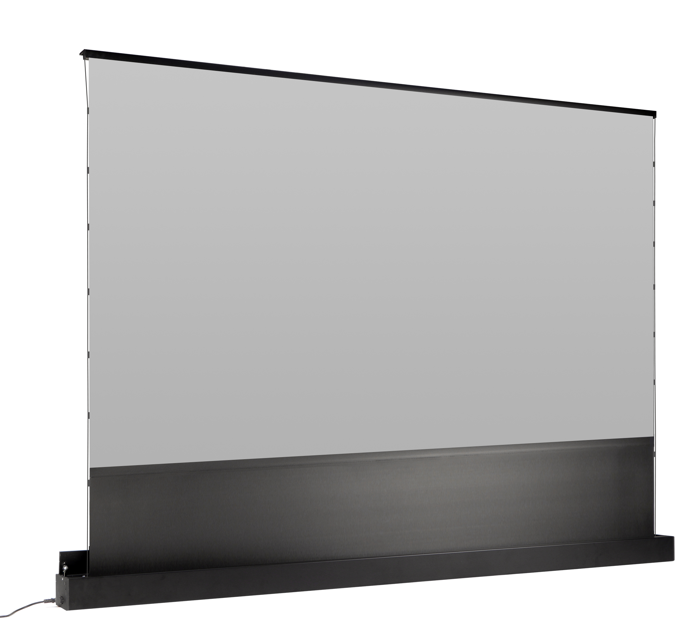 Ever larger pictures are difficult to combine with classic screens and TVs with high-quality living room design. Visually, a TV >75" often looks unsightly when switched off, disturbs the interior design and takes up wall space that could be better designed or used for other furnishings. With our new CLR floor scissor screen and a UST projector, you get around this problem in a truly impressive way. The housing design with clean lines is not only easier to install in or on furniture than the previous version, it also cuts a very good figure in minimalist room design.