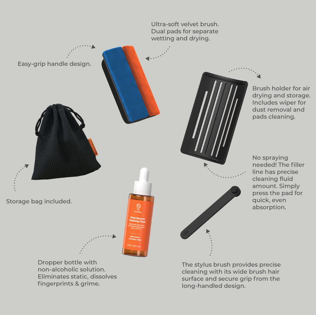 The HumminGuru Stylus Brush provides precise cleaning with its wide brush hair surface and secure grip from the long-handle design. The included pouch keeps all components neatly organized in one place. Let this HumminGuru I-Brush 5-in-1 kit lead the way to hassle-free record maintenance.