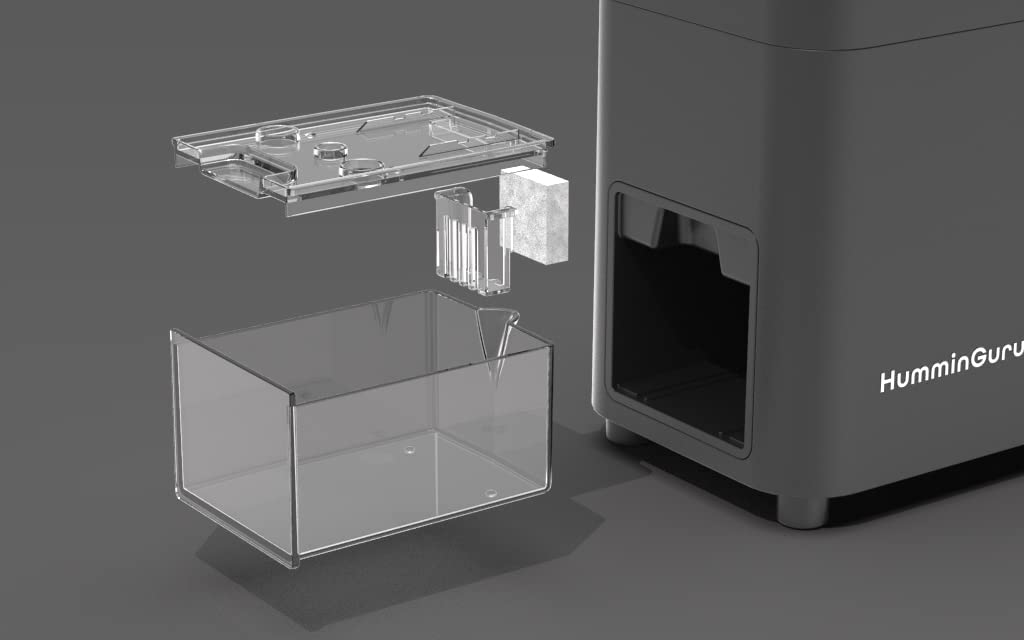 Στη λειτουργία Auto Clean & Dry, μπορείτε να ακούσετε την εγγραφή σας αμέσως μετά τον καθαρισμό που διαρκεί ανάλογα το πρόγραμμα 7’-15’ min. Με τον Eco σχεδιασμό του, το HumminGuru καταναλώνει μόνο 400 ml απεσταγμένου νερού. Το πιο σημαντικό, μπορείτε να χρησιμοποιήσετε ξανά το νερό χρησιμοποιώντας το ειδικό σύστημα φίλτρου νερού. Επιπλέον, ένα φίλτρο αέρα έχει τοποθετηθεί στην περιοχή της εισαγωγής αέρα για να αποτρέψει την επανεμφάνιση εξωτερικής σκόνης στον δίσκο κατά τη διάρκεια της διαδικασίας.