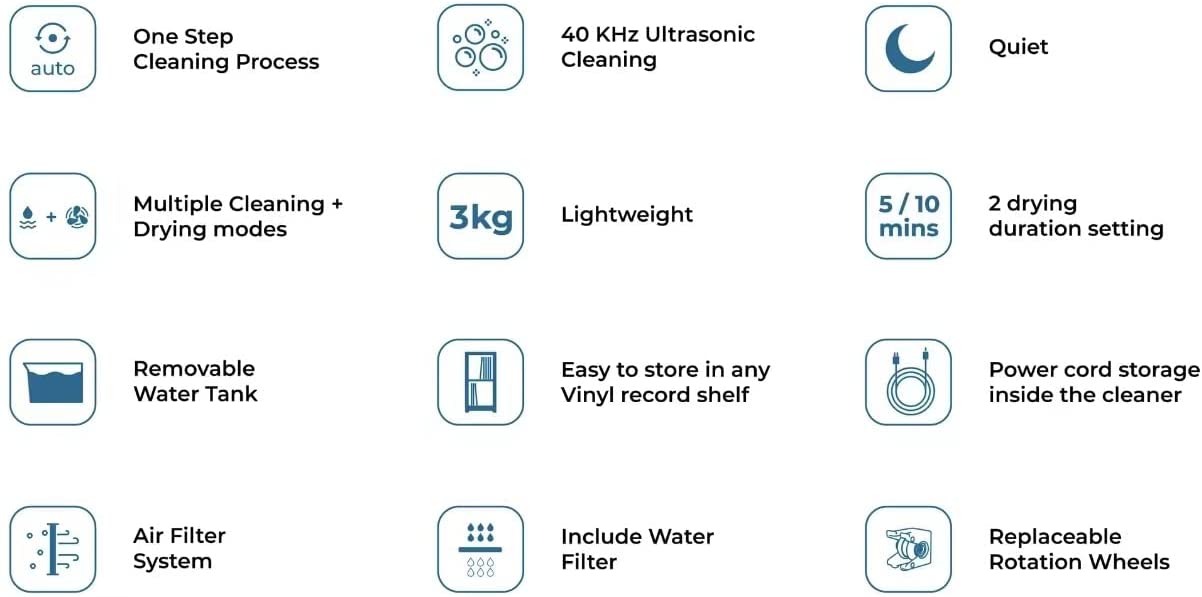 Το HumminGuru είναι ένα πλυντήριο βινυλίων με υπερήχους συμπαγές, ελαφρύ και αθόρυβο. Είναι συμβατό και με δίσκους 7" και 10" με ειδικούς προσαρμογείς. Υποστηρίζει επίσης βινύλια 180g και 220g. Το HumminGuru έχει εφαρμόσει ένα σύστημα υπερήχων duo-40kHz. Τα 40 kHz, είναι ισχυρή συχνότητα για την αφαίρεση ακαθαρσιών και σκόνης από τους δίσκους χωρίς να προκαλείται καμμία ζημιά. Το καθαριστικό δίσκων HumminGuru είναι γρήγορο, εύκολο στη χρήση και με πολύ χαμηλό θόρυβο λειτουργίας.