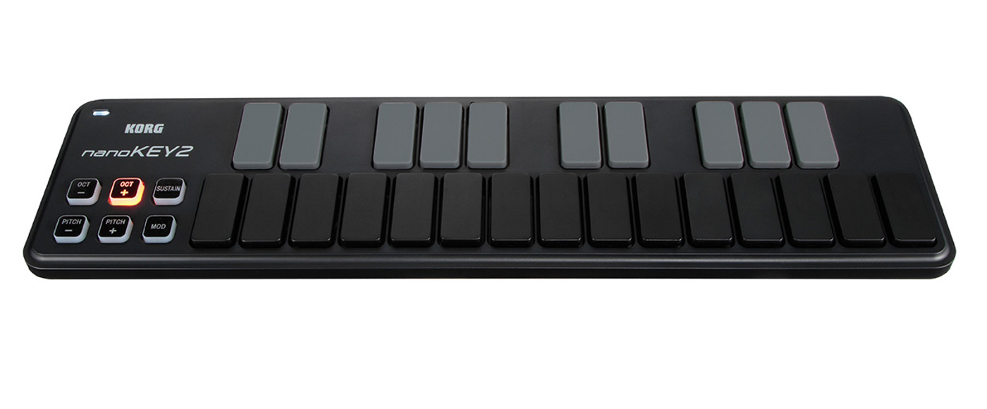 The nanoKEY2 features an advanced and up-to-date design. By combining the great-feeling “touch” that Korg has developed for its professional MIDI keyboards and the low-profile “thinness” of recent computer keyboard innovations, the nanoKEY2 provides a superior keyboard response for its class and size.
