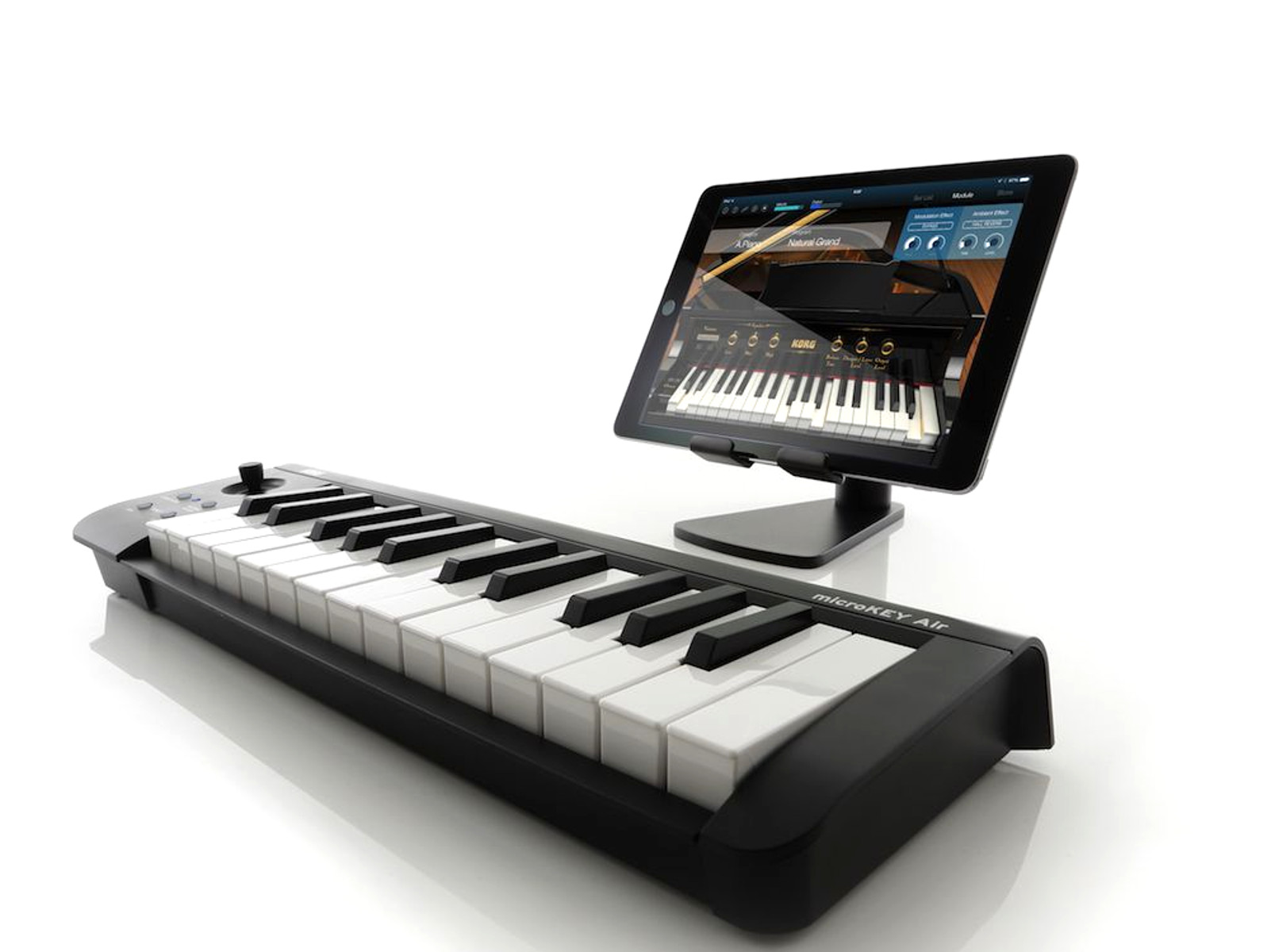 Midi keyboard νέας γενιάς με 25 velocity sensitive mini πλήκτρα τεχνολογίας Νatural Τouch, pitch bend & modulation joystick, επιλογή οκτάβας,άμεση σύνδεση με IOS συσκευές μέσω του Apple Camera Adapter χωρίς να απαιτείται παροχή ρεύματος και μεσω Bluetooth σε εφαρμογές που επιτρέπουν την ασύρματη σύνδεση.