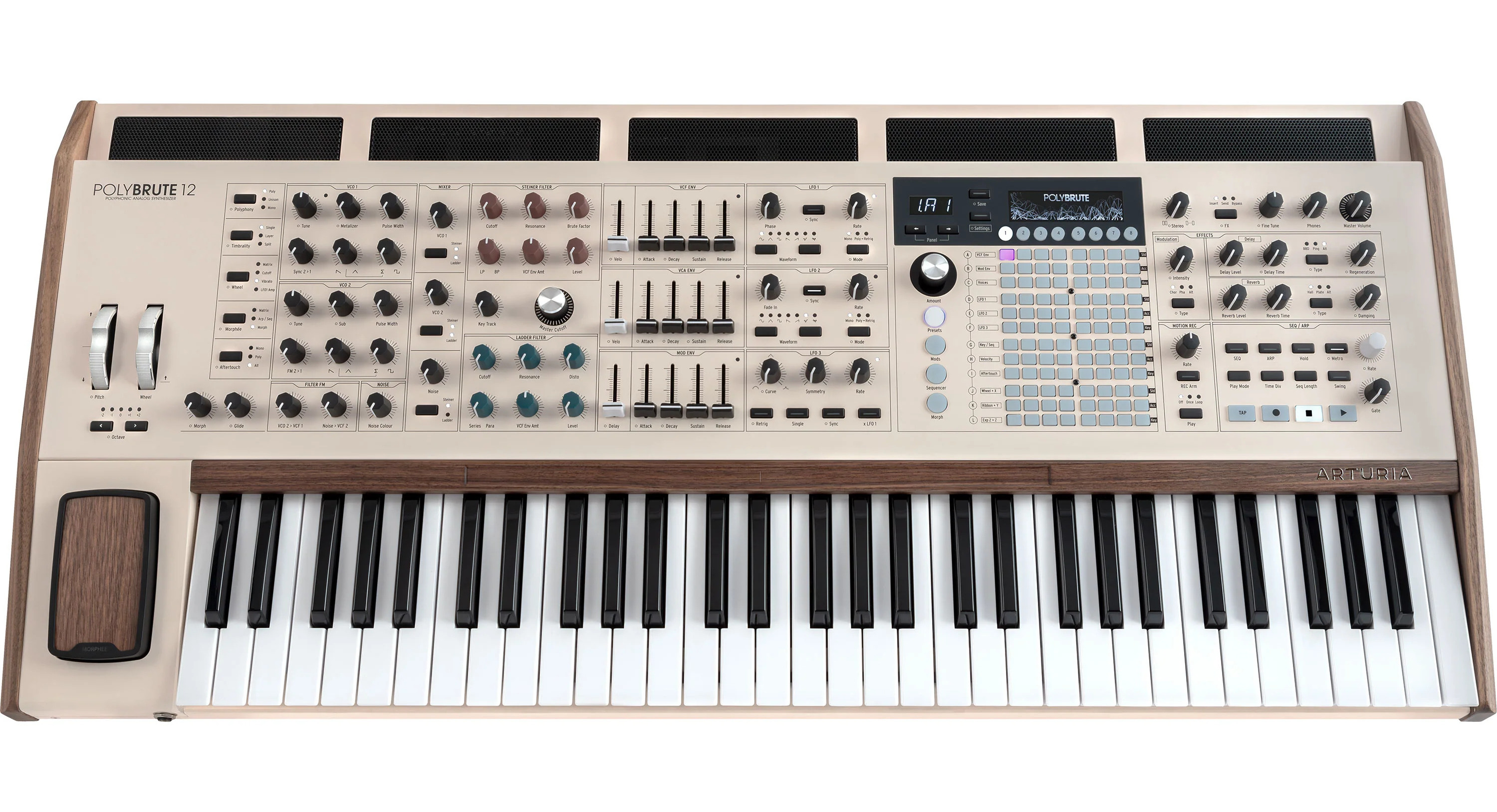 Το πολυφωνικό πληκτρολόγιο Full Touch® MPE του PolyBrute προσφέρει απαράμιλλη ευαισθησία και έλεγχο, επιτρέποντας σε κάθε νότα να διαμορφώνεται ανεξάρτητα, για μια απίστευτα δυναμική σύνθεση. Αυτό συν το τρισδιάστατο pad Morphee, το χειριστήριο ribbon (ξύλινο) και το καταγραφικό κίνησης, καθιστά δυνατή την πραγματικά πολυδιάστατη διαμόρφωση.