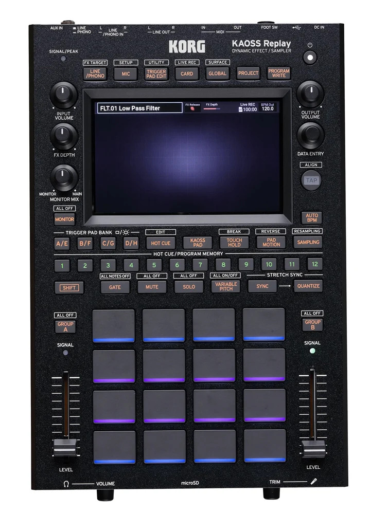 Real time FX controller με X-Y touch pad και 16 φωτιζόμενα trigger pads με velocity.Διαθέτει 128 προγράμματα, οθόνη OLED 5”,128 samples/project,πάνω απο 100 projects μπορούν να αποθηκευτούν σε micro SD card,128 KAOSS effects,2 αναθέσιμα faders,12 Favourite μνήμες,12 Cue points,ενσωματωμένη κάρτα ήχου 2in/2out 16bit/48kHz,επιπλέον εφέ για σύνδση με μικρόφωνο(Reverb/delay/Tone),Δυνατότητα sampling -Resampling έως 30 λεπτά και Live sampling έως 100 λεπτά.Χρώμα μαύρο.Βάρος 2Kg