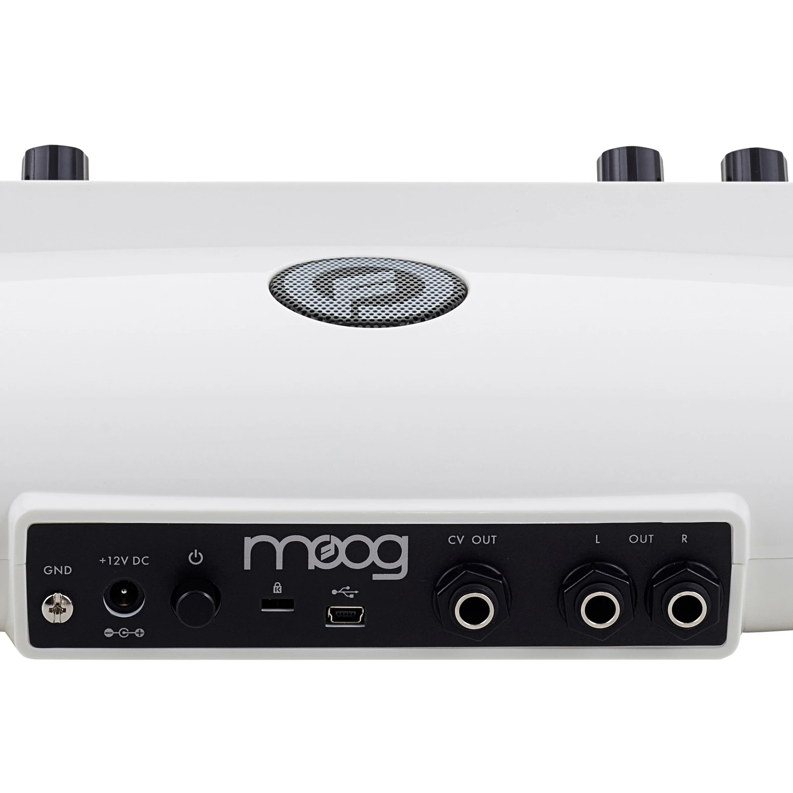 The Moog Theremini's built-in speaker allows you to perform live on the fly, and a front-panel headphone jack makes it easy to practice quietly. Plugging in ear buds or headphones automatically silences the top-panel speaker.