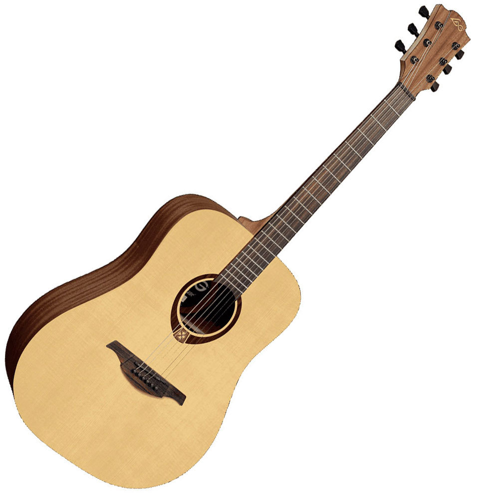 Aκουστική κιθάρα Tramontane Dreadnought. Καπάκι από μασίφ έλατο sitka, μπράτσο, πλαϊνά και πίσω μέρη από Tropical Khaya και ταστιέρα από Brownood. Μαύρα μεταλλικά μέρη, χρώματος φυσικού open-pore ματ.