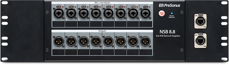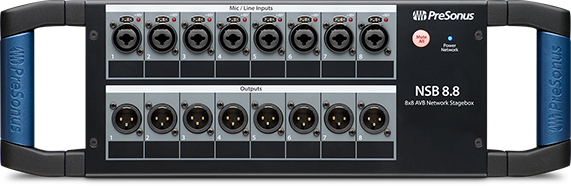 Το NSB 8.8 είναι εξοπλισμένο με οκτώ εισόδους combo (mic/line) που διαθέτουν τους διάσημους προενισχυτές XMAX class Α της Presonus, με τηλεχειρισμό. Όλες οι είσοδοι line μπορούν να ελέγχονται από μια κονσόλα StudioLive Series III και από το λογισμικό PreSonus UC Surface.Και οι οκτώ έξοδοι διαθέτουν υποδοχές XLR με lock. Αν αυτό δεν σας αρκεί, ένας ενσωματωμένος διακόπτης AVB 2 θυρών σάς επιτρέπει να συνδέσετε κι άλλες συσκευές, που σας προσφέρουν αρκετές συνδέσεις για ακόμα μεγαλύτερες εκπομπές και εγκαταστάσεις.