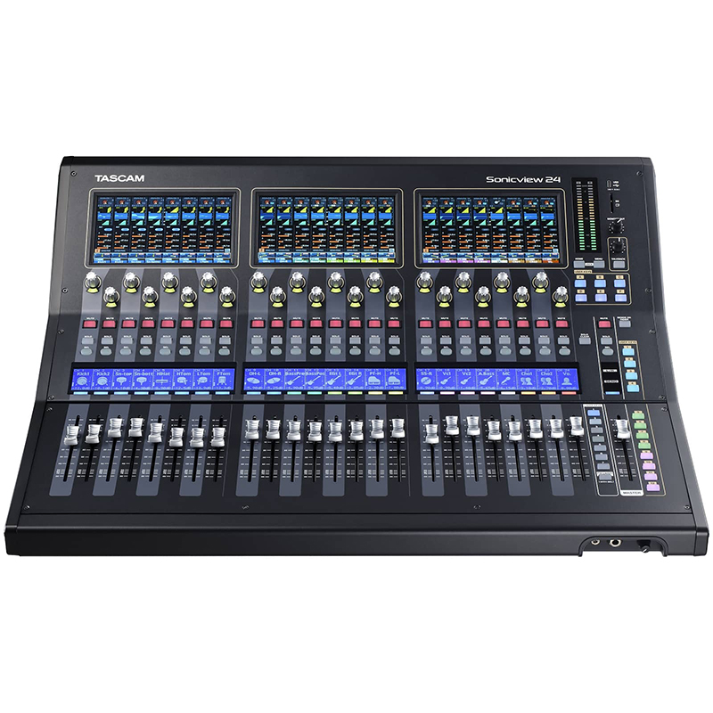 H κονσόλα Tascam Sonicview 24 προσφέρει μηχανοκίνητα (motorised) fader καναλιών σε τρεις συστοιχίες των οκτώ, συν ένα μηχανοκίνητο fader για το κεντρικό στερεοφωνικό δίαυλο. Πάνω από κάθε συστοιχία fader καναλιών υπάρχει μια έγχρωμη οθόνη αφής που σας επιτρέπει να βλέπετε ολόκληρα κανάλια μείκτη ή να ελέγχετε κάθε παράμετρο με το δάχτυλό σας. Αποθηκεύστε τις ρυθμίσεις fader και ανακαλέστε τις αμέσως αργότερα για να συνεχίσετε από εκεί που σταματήσατε. Ελέγξτε τα επίπεδα σε μια μίξη ή υπομίξη με μια ματιά και προσαρμόστε τα κατά τη διάρκεια της μίξης είτε με τα φυσικά faders είτε με την οθόνη αφής. Οι αλλαγές σας θα ενημερωθούν άμεσα και στα δύο.